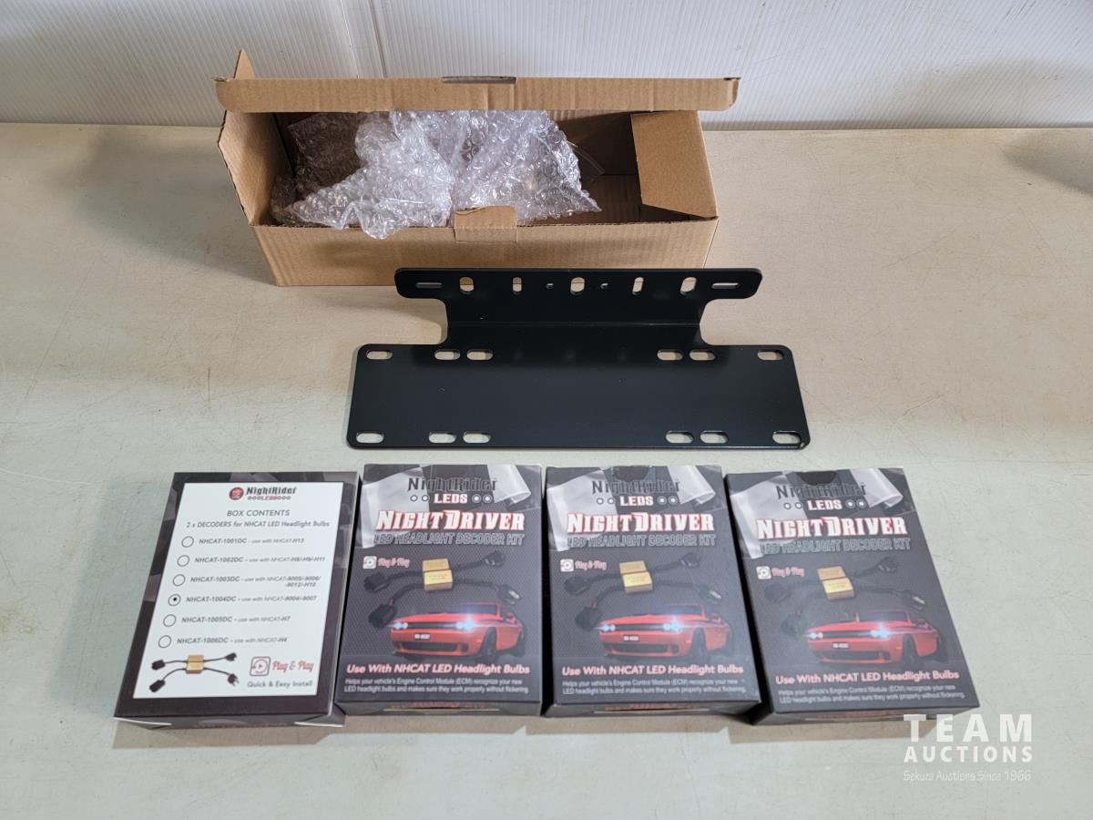 1450 (4) Decoder Kits For NHCAT LED Headlight Bulbs For 9004/9007 and (1) License Plate Bracket (Unused)