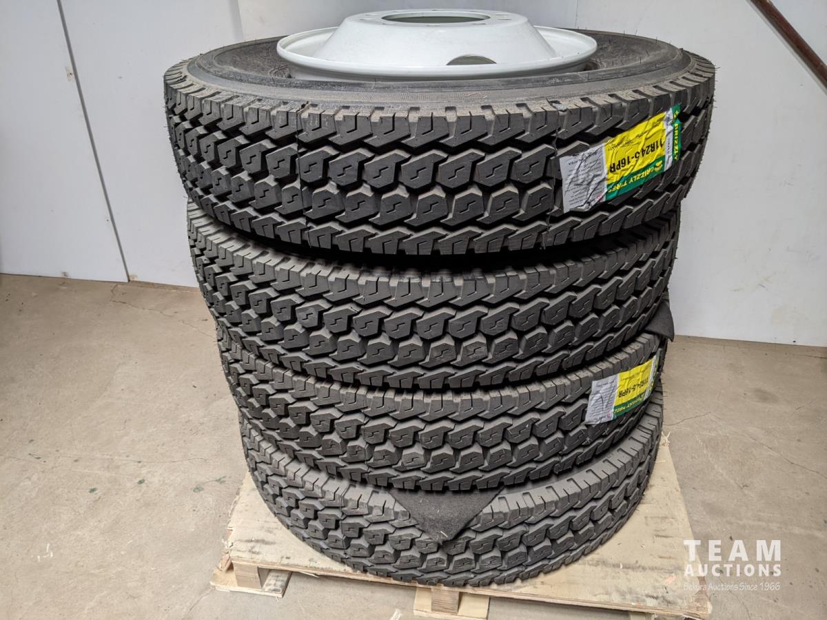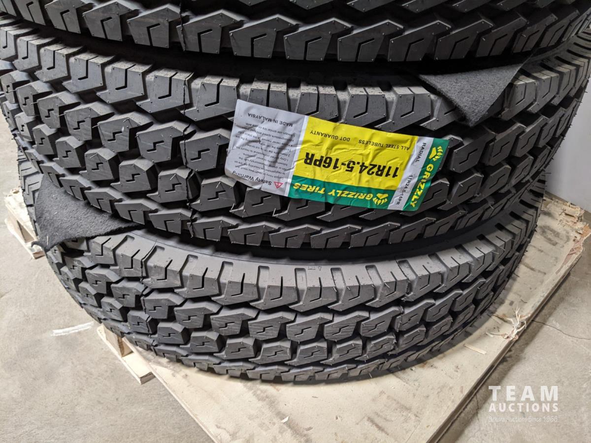 1108 (4) Grizzly 11R24.5-16PR Tires On 10 Bolt Steel Rims (Unused)