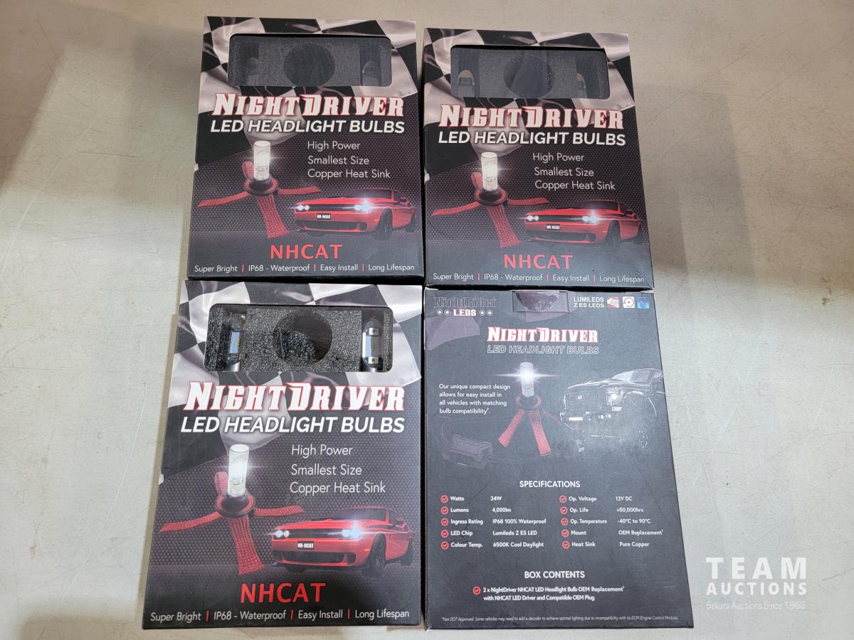 1664 (4) Sets of Night Rider LED NHCAT-9012 Headlight Bulbs (Unused)