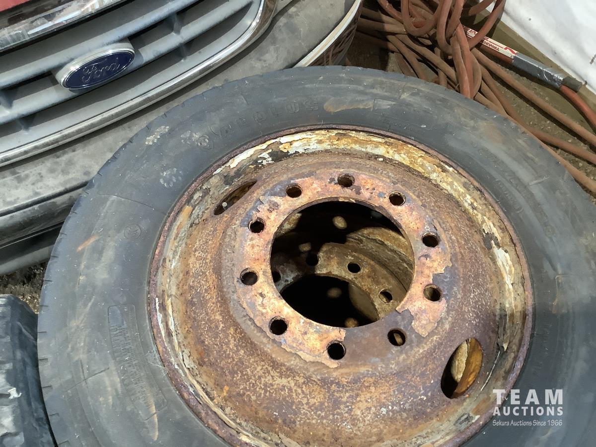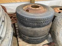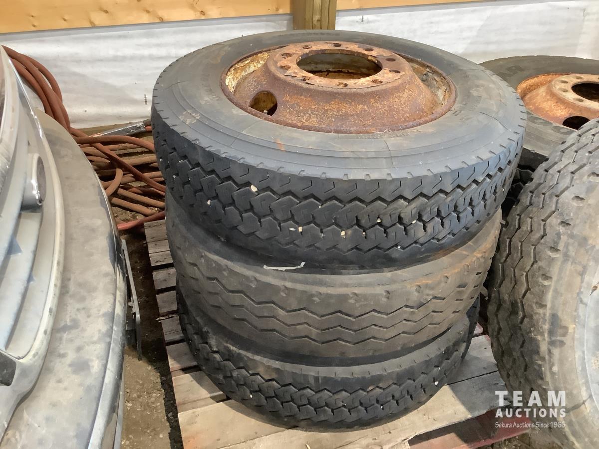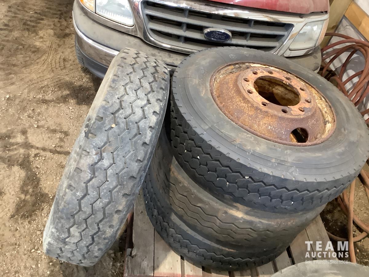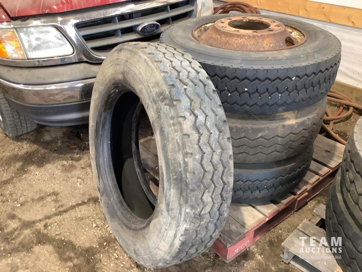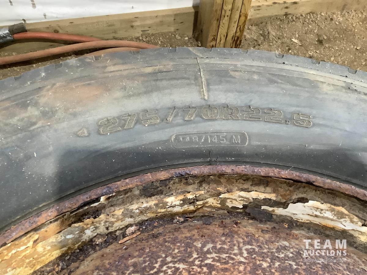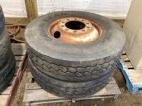 (2) steel rims with 12RX22.5 tires, (3) steel rims with 275/70-22.5 tires, tire only 285/75R22.5