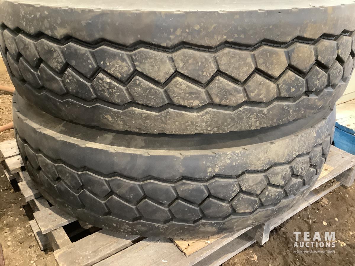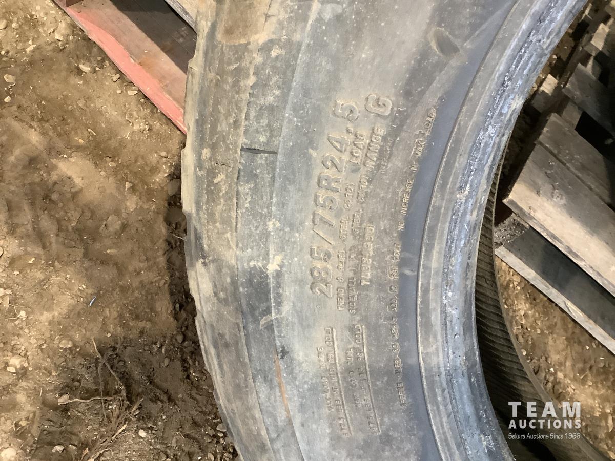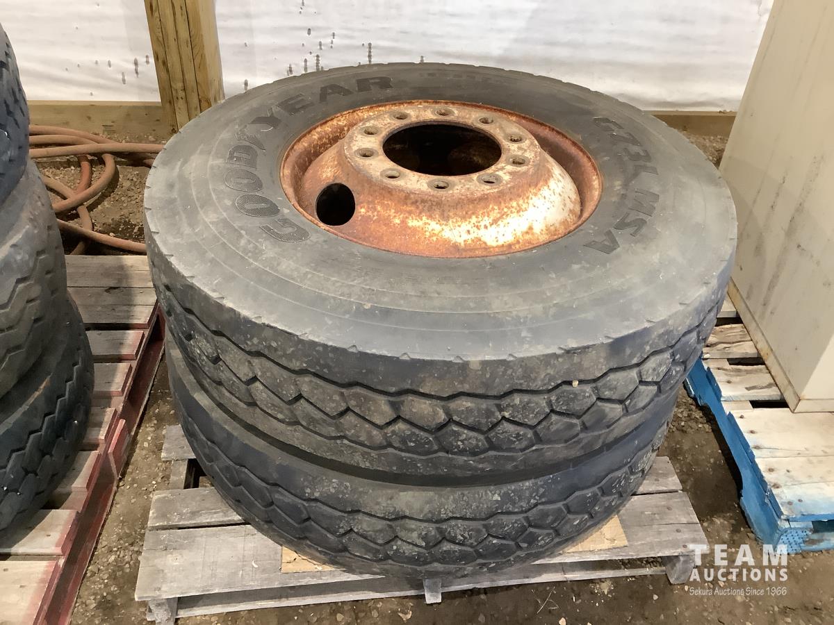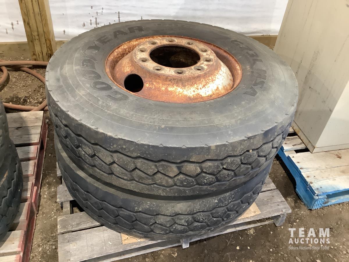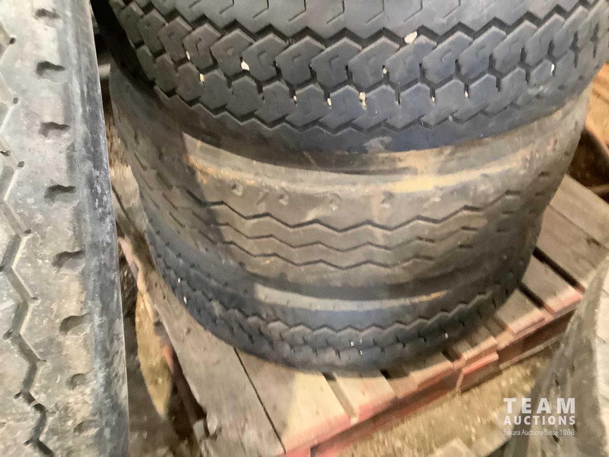 (2) steel rims with 12RX22.5 tires, (3) steel rims with 275/70-22.5 tires, tire only 285/75R22.5