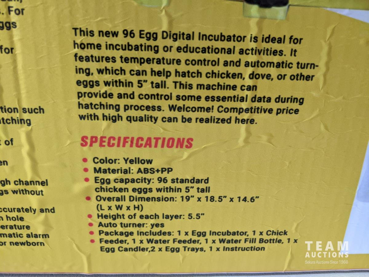 1272 96 Egg Digital Automatic Incubator (Unused)