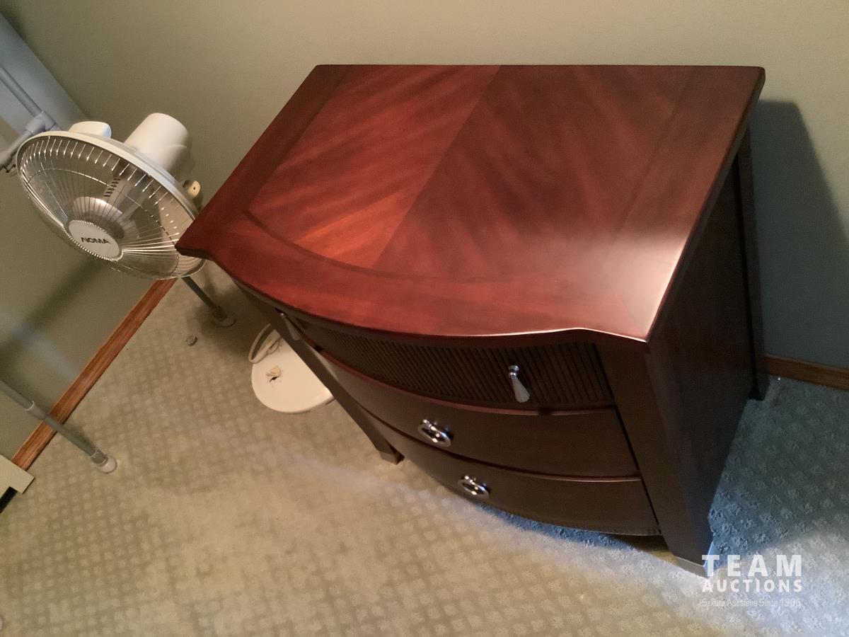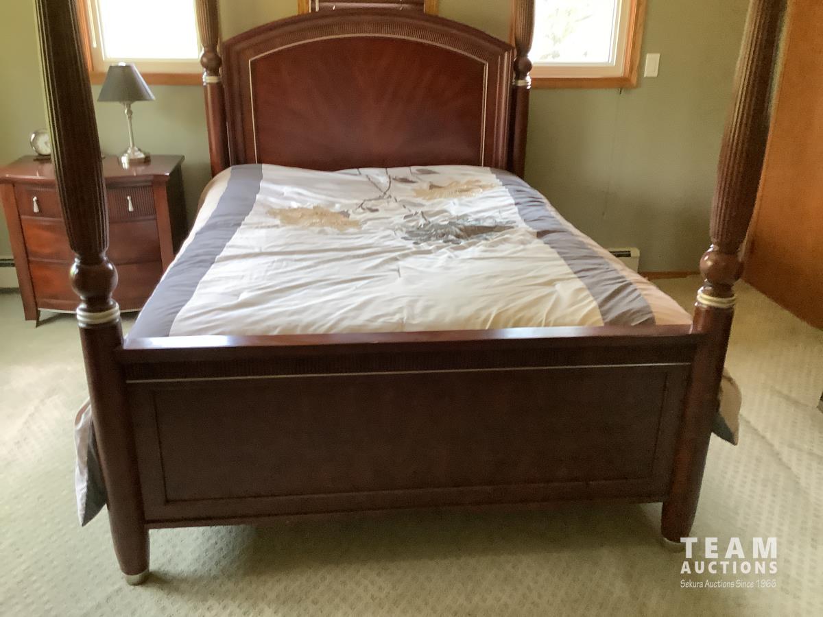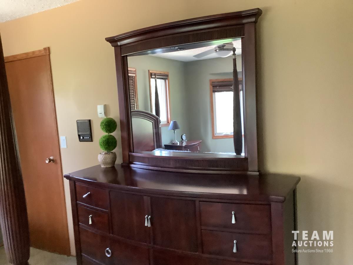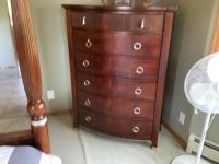 Bed, head and footboard, nightstand, fan, dresser and mirror and standup dresser