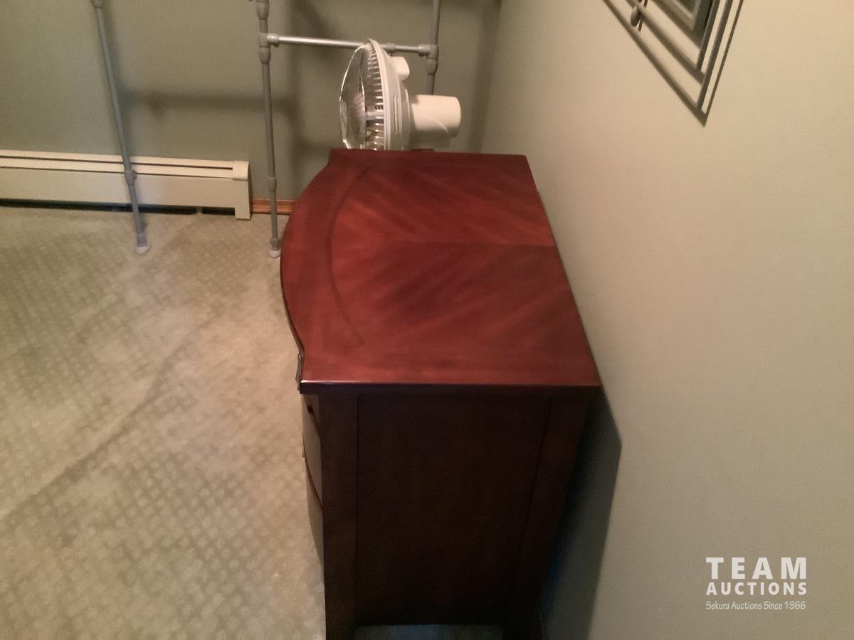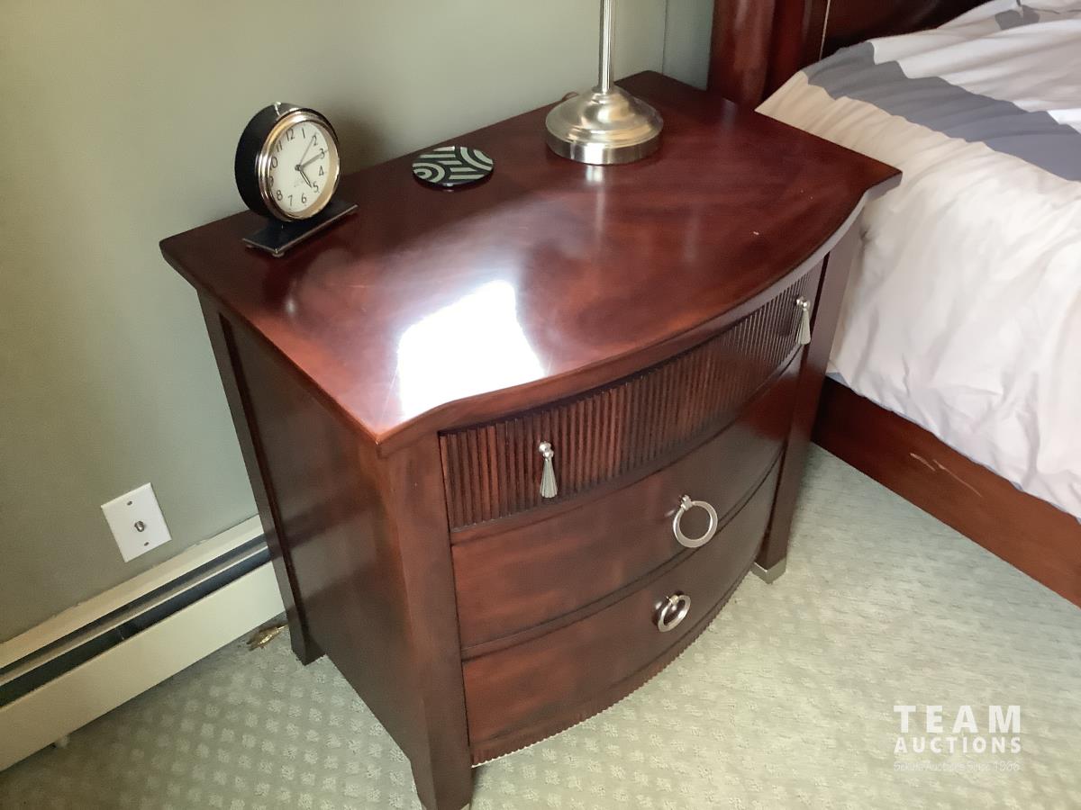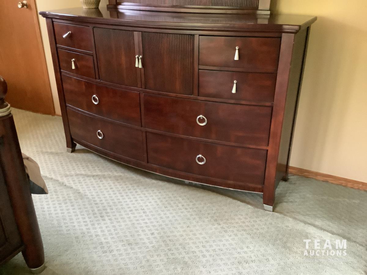 Bed, head and footboard, nightstand, fan, dresser and mirror and standup dresser
