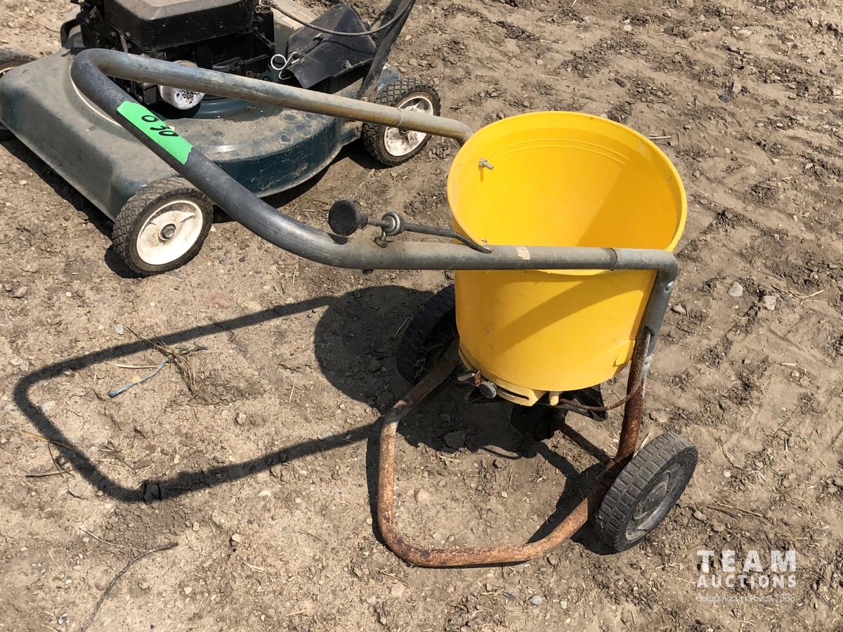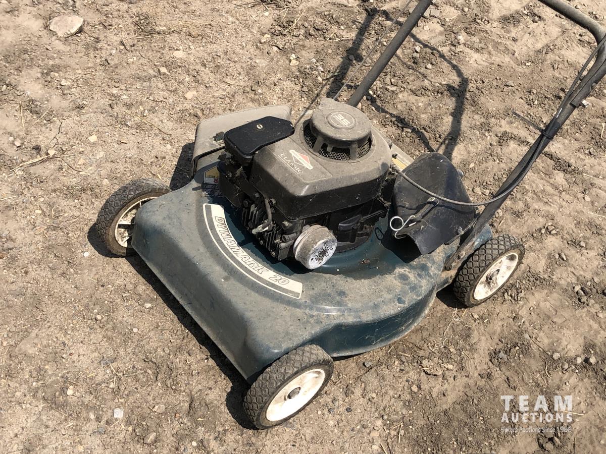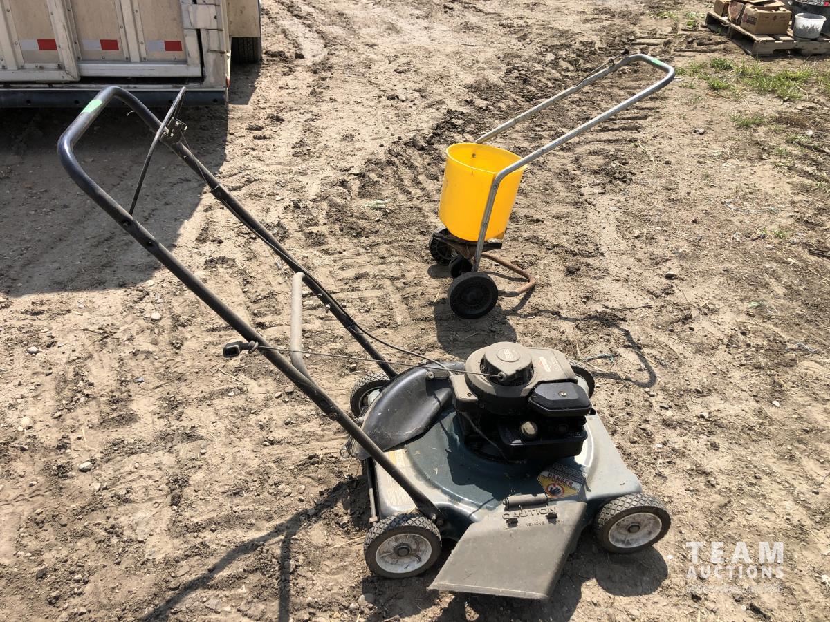1877 Dynamark 20 Inch Gas Powered Lawn Mower and Grass Seeder