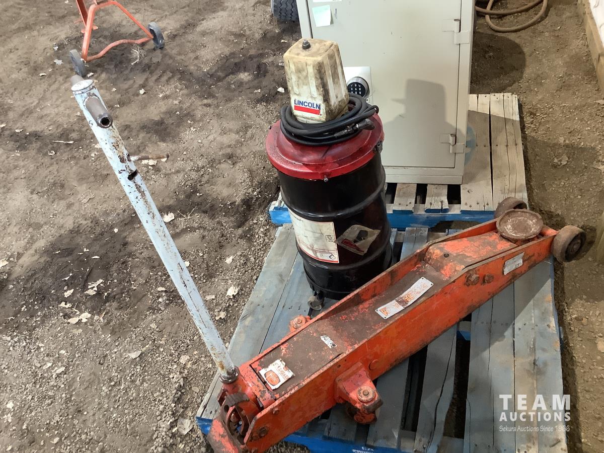 1944 Lincoln Air Greaser, Texaco Pail and Strogarm Model H-100 Floor Jack