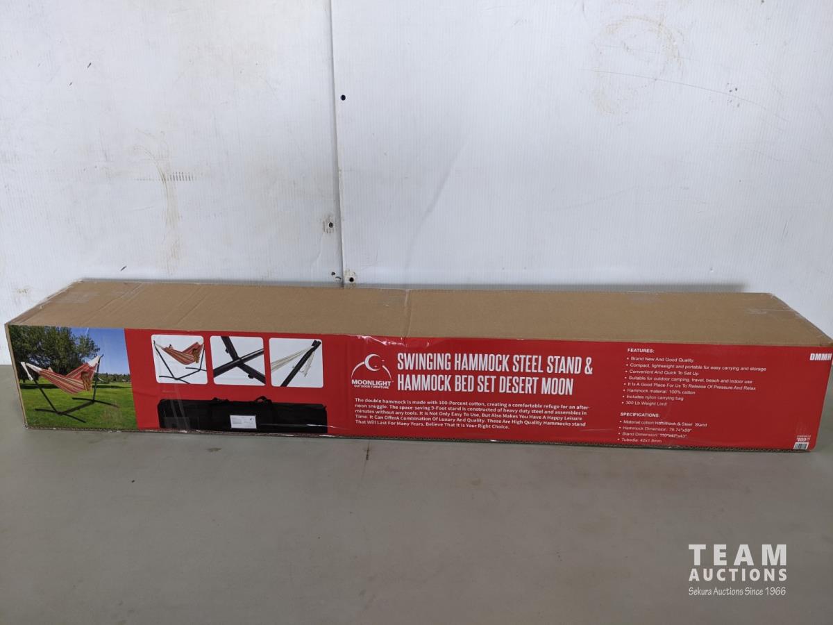 1625 Moonlight Outdoor Furniture Swinging Hammock and Steel Stand (Unused)