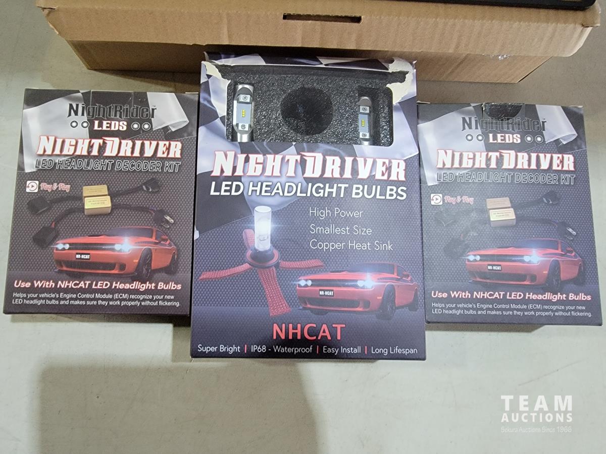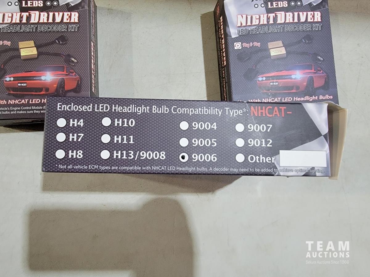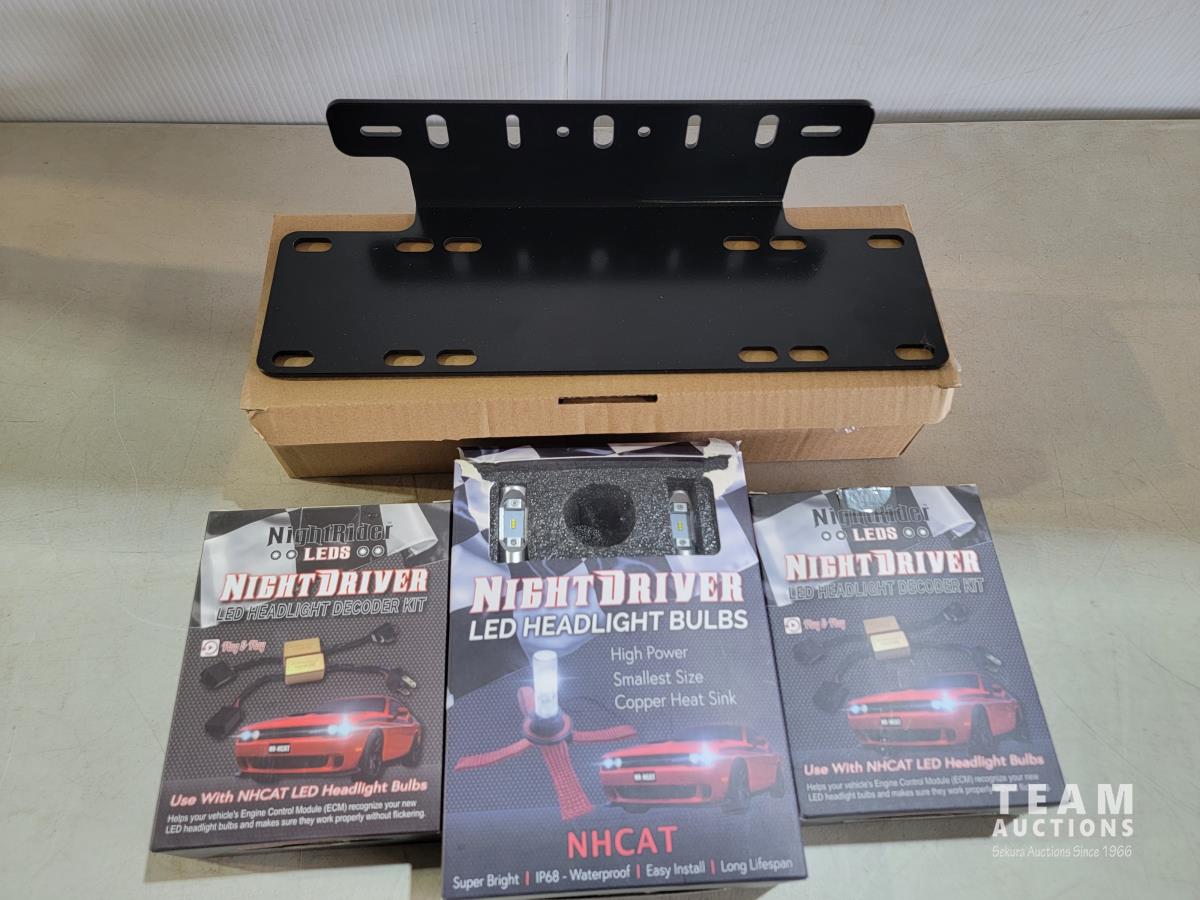 1659 Night Rider LED NHCAT-9006 Headlight Bulbs, (2) LED Decoder Kits and License Plate Bracket (Unused)