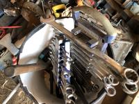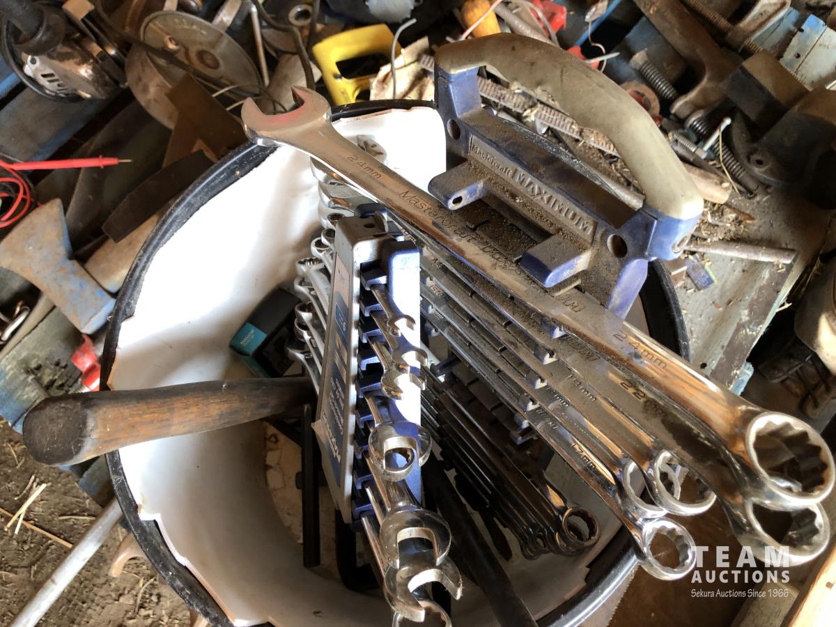 hand saws, clamps, vise, wrenches and files