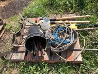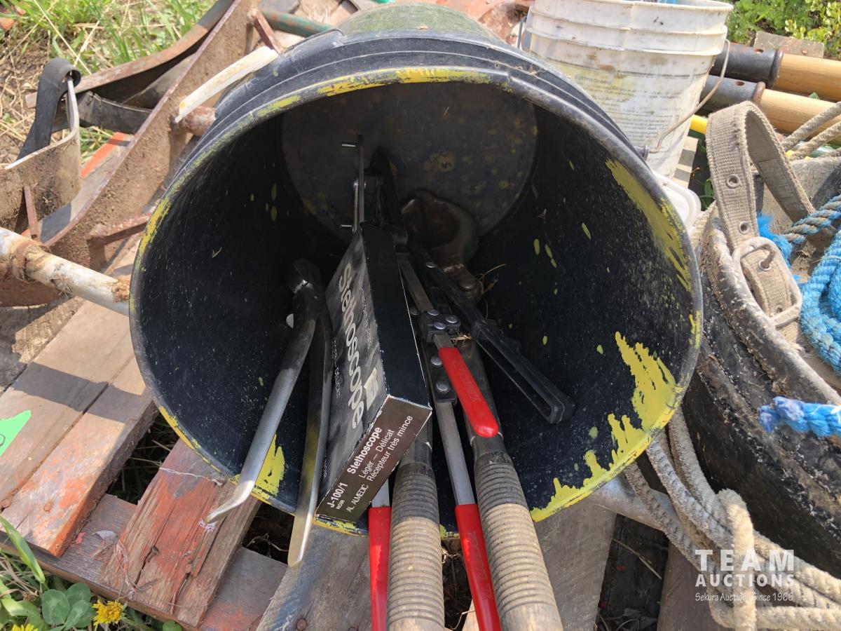 Dehorners, calf pullers, cattle prod, miscellaneous tools, rope
