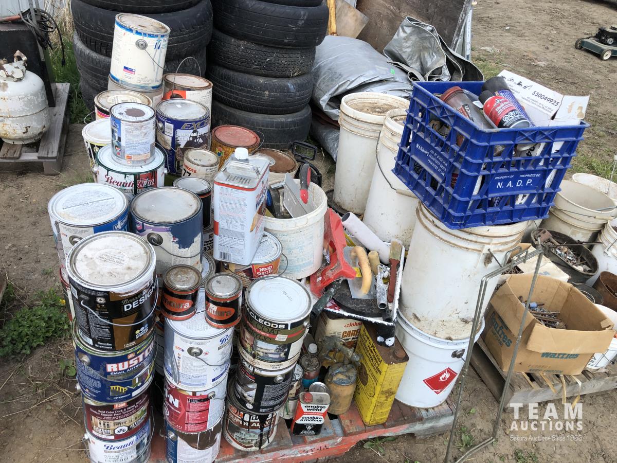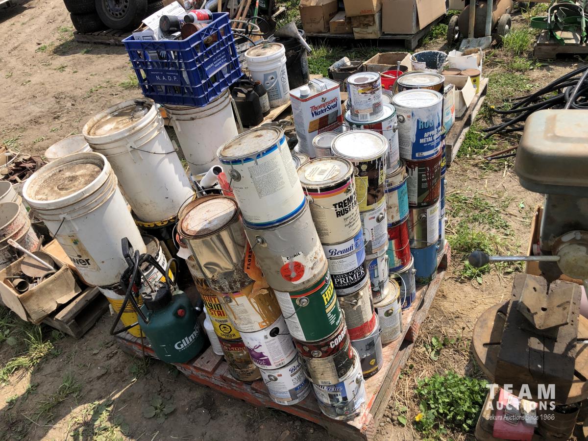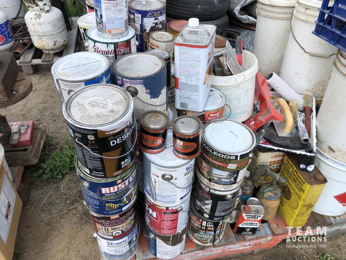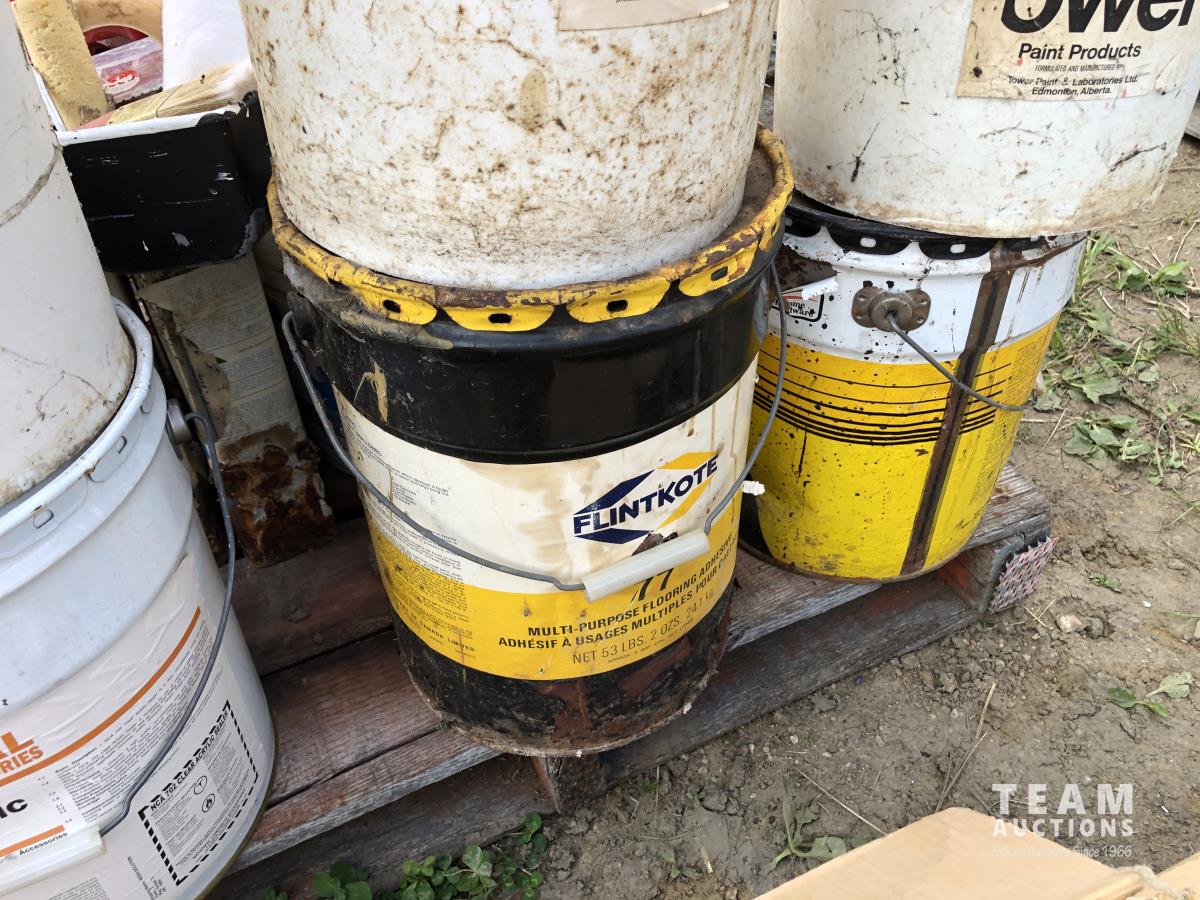 1890 Qty of Misc Paints, Stain, Adhesives and Misc Shop Fluids