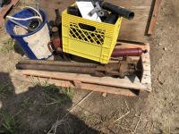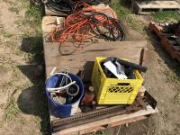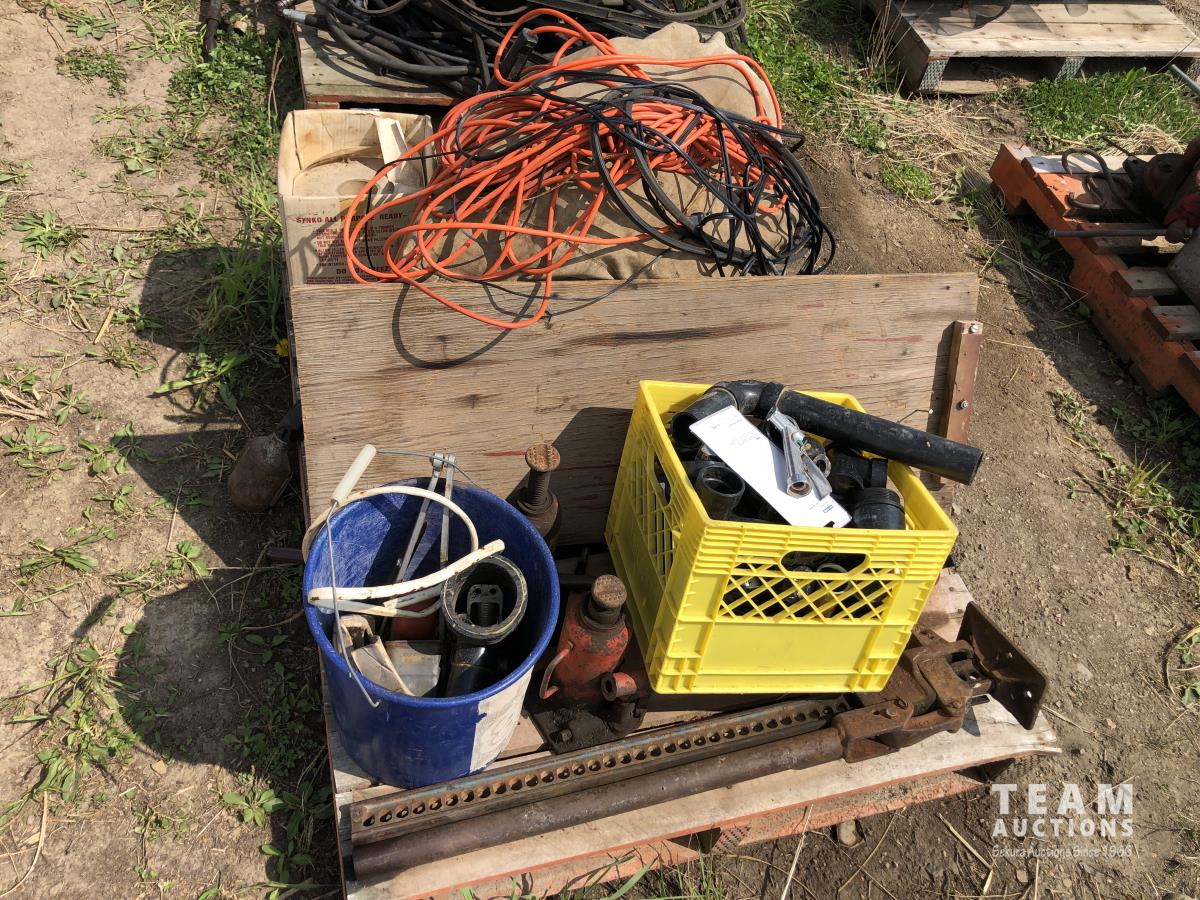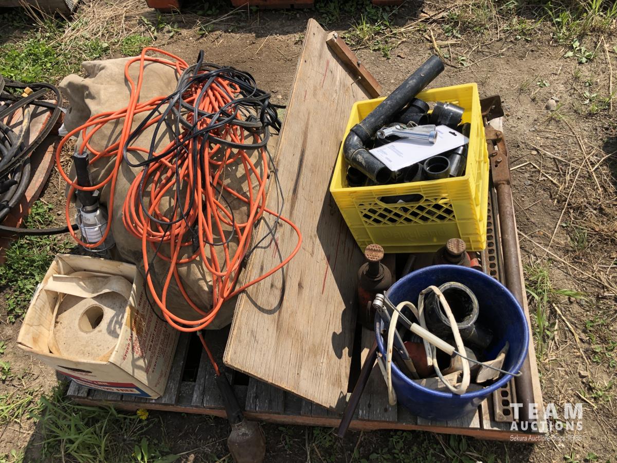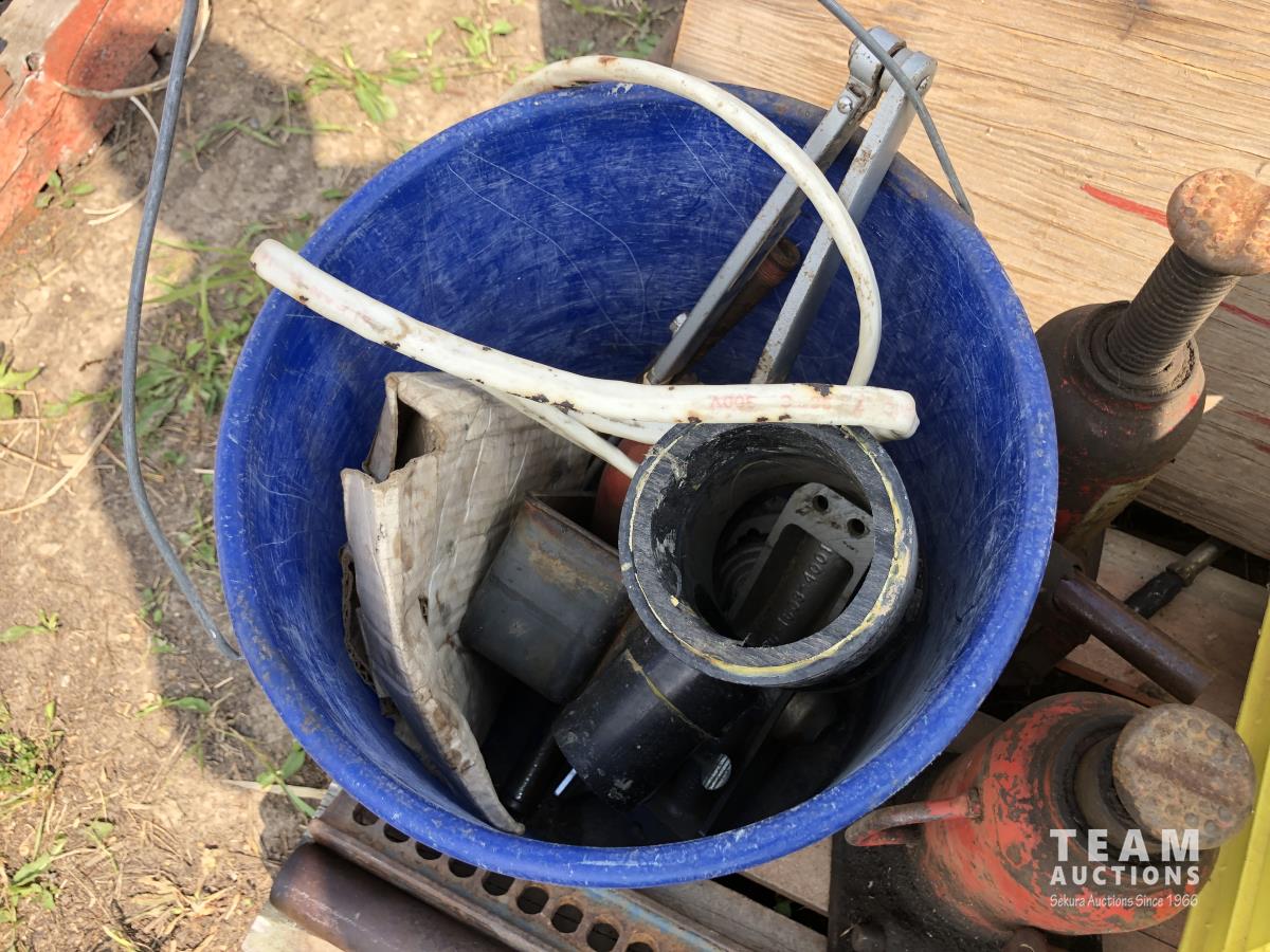 Grease guns, power cords, trouble light, creeper, Jackall, bottle jacks, plumbing supplies