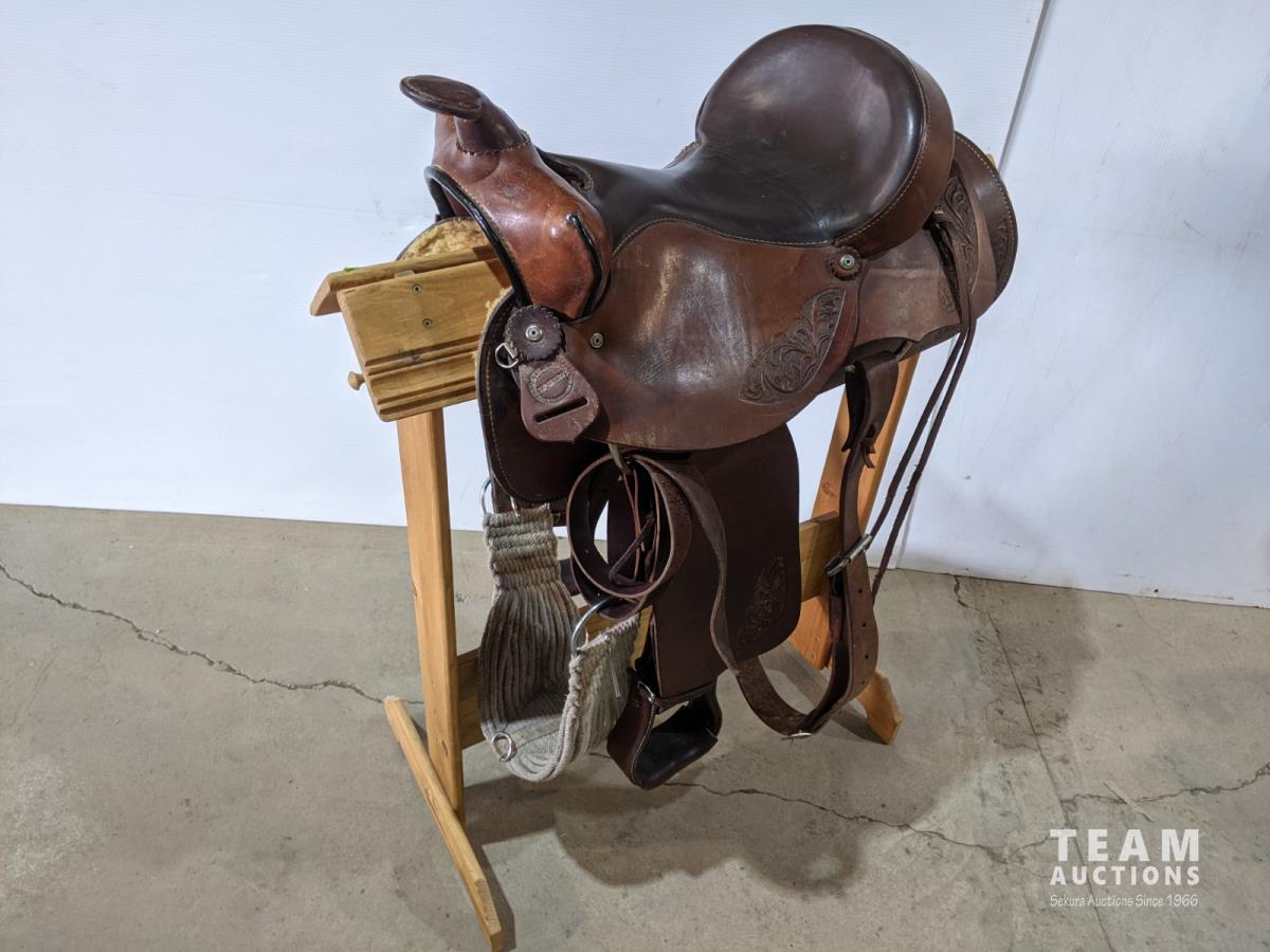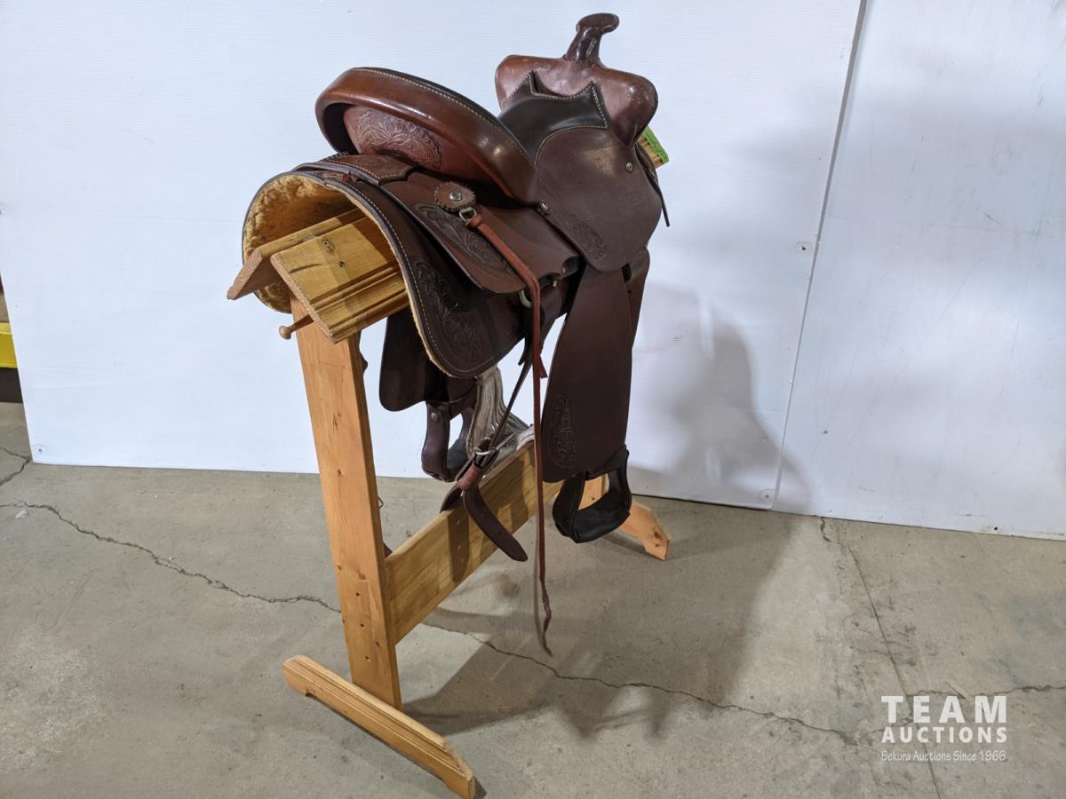 1701 Ron's Leatherwork 14 Inch Saddle with Stand