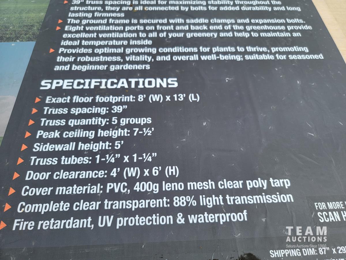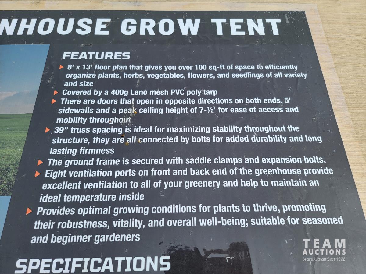 1733 TMG Industrial TMG-GH813 8 Ft X 13 Ft Greenhouse Grow Tent (Unused)