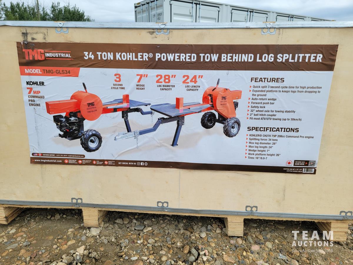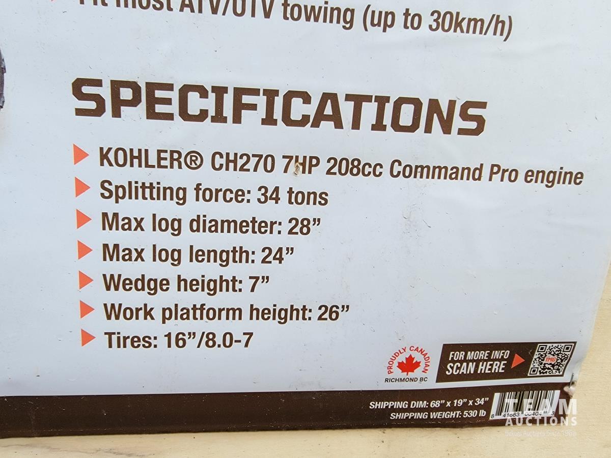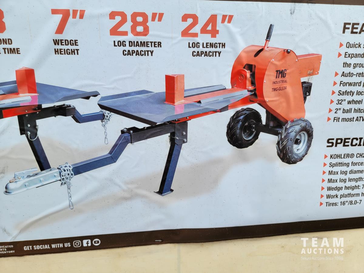 1775 TMG Industrial TMG-GLS34 34 Ton ATV/UTV Tow-Behind Log Splitter (Unused)