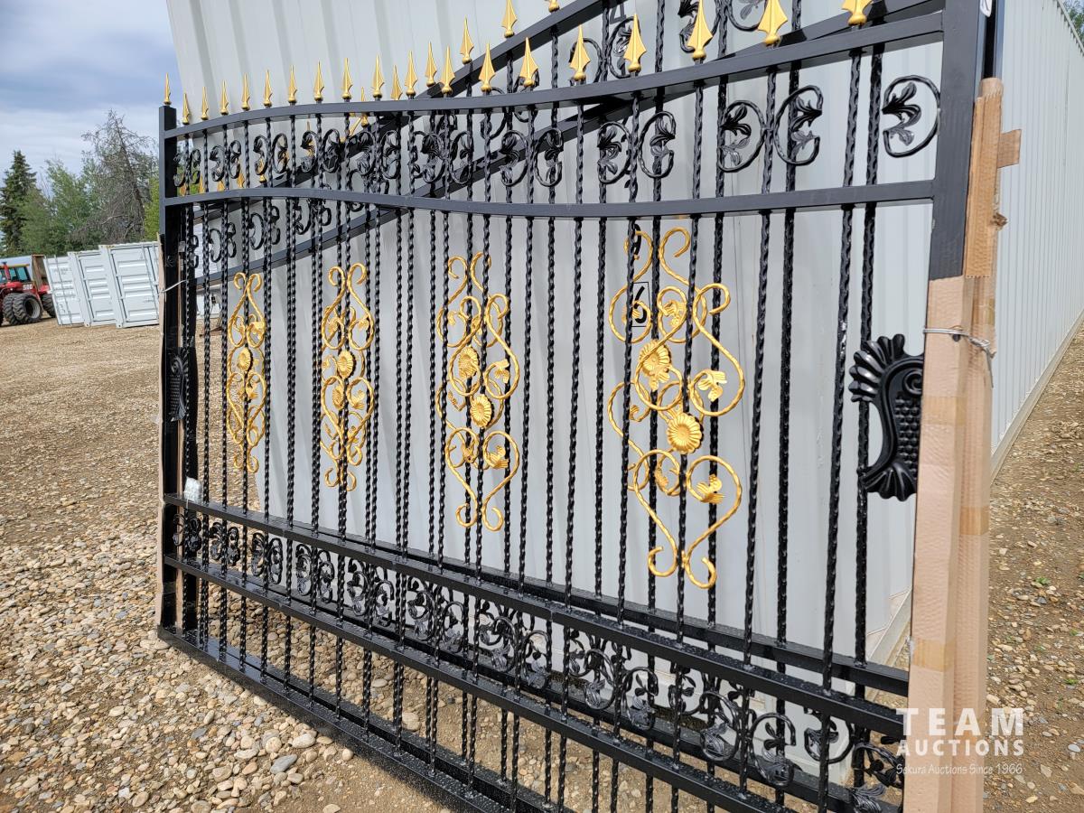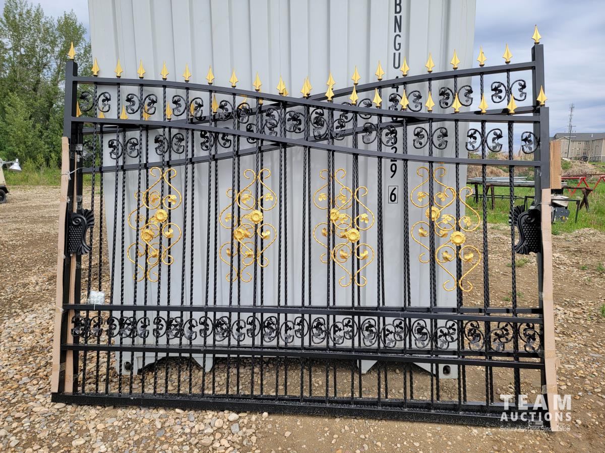 1813 TMG Industrial TMG-MG20 20 Ft Bi-Parting Deluxe Wrought Iron Ornamental Gate (Unused)