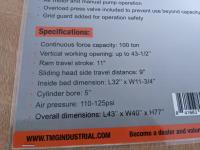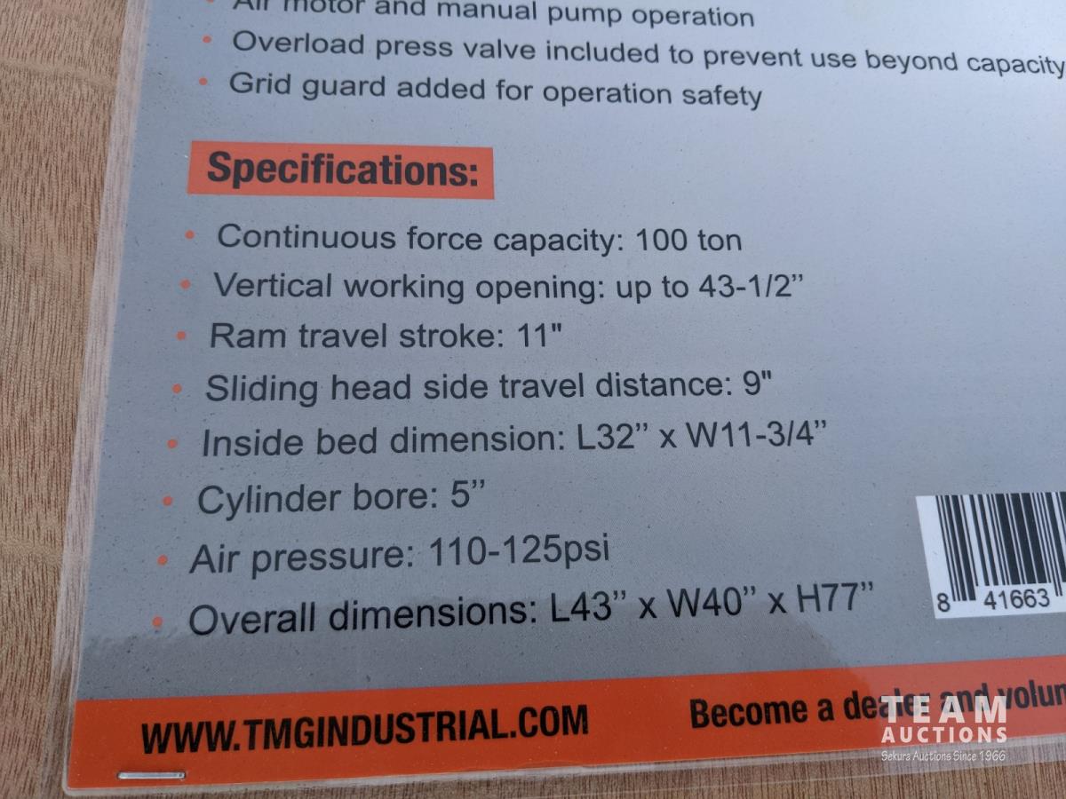 1729 TMG Industrial TMG-SP100 100 Ton Capacity Hydraulic Shop Press (Unused)