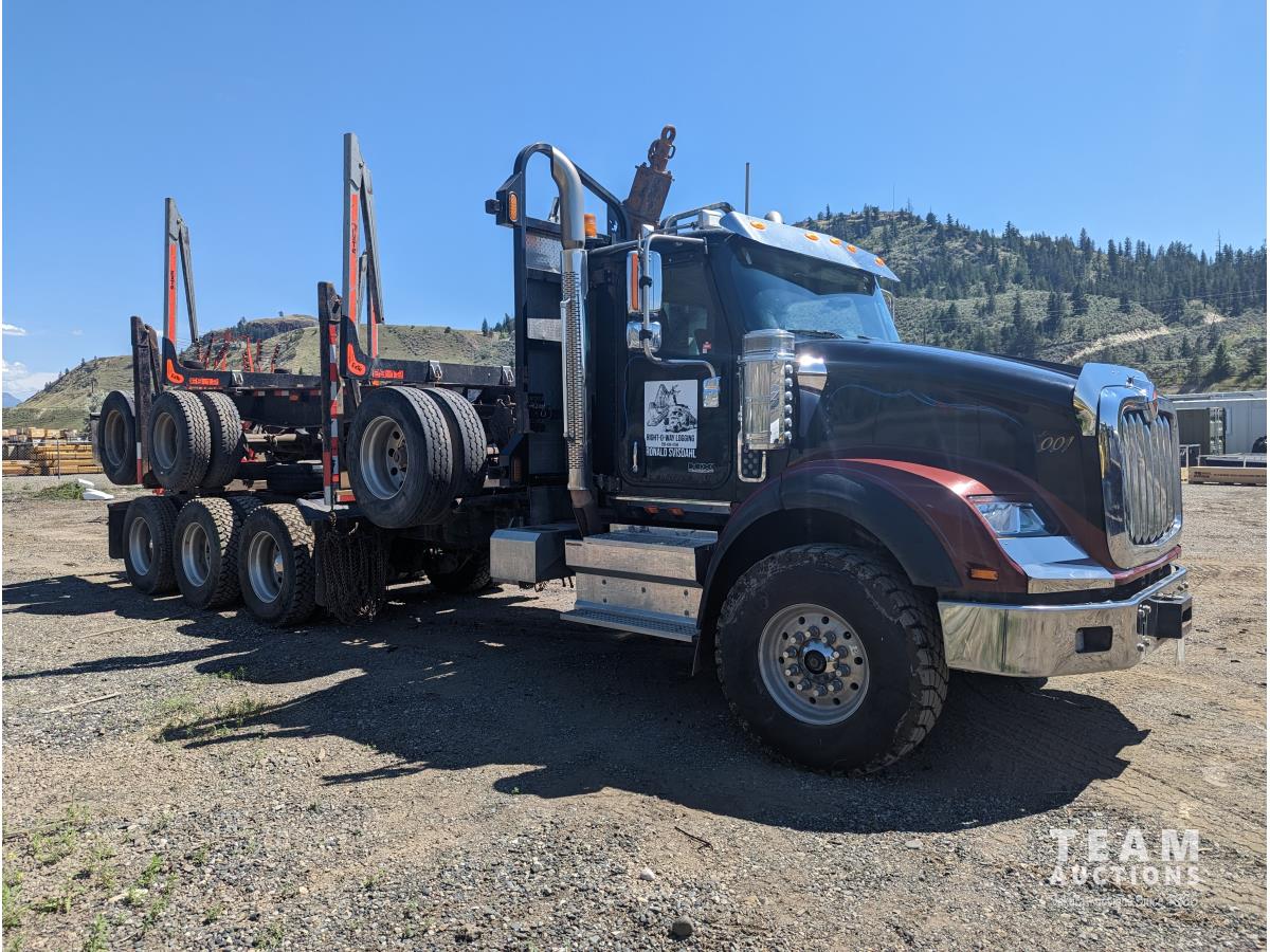 180 2020 International HX620 Tri-Drive Day Cab Log Truck & 1987 Peerless Tr-/a Log Wagon