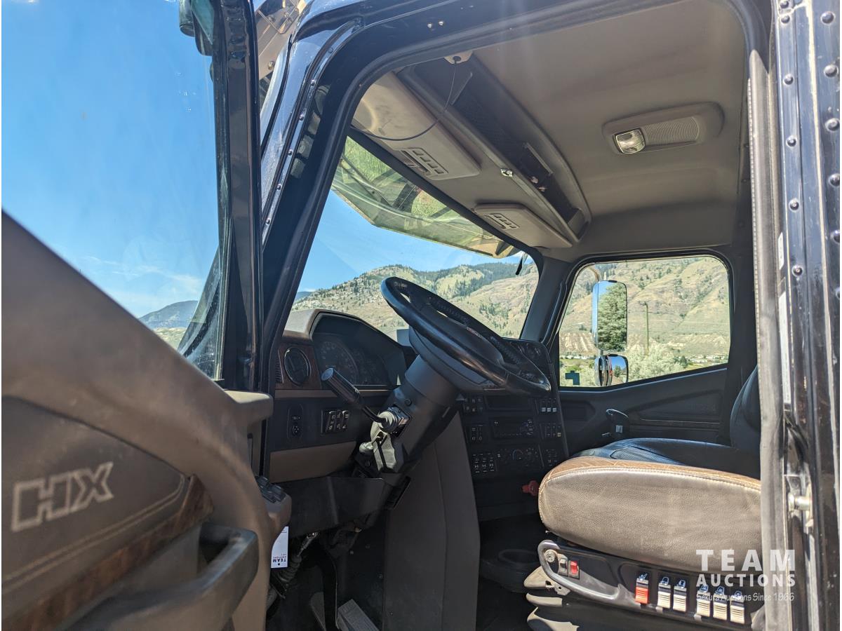 Cummins X15565 15 L 6 cylinder 565 HP diesel engine, DEF required, Eaton 18 speed manual transmission, A/C, cruise control, air ride seats, 7ft 6 inch bunks, Henderson air ride suspension, 20,000 lb front axle, 52,998 lb rear axles, full lockers, 330 inch WB, two spare tires, dual steering box, all aluminum wheels, 425/65R22.5 front tires, 11R24.5 rear tires