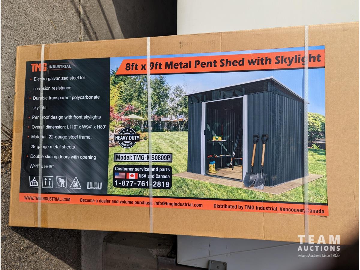 82 TMG Industrial MS0809P 8 Ft X 9 Ft Galvanized Metal Pent Shed (Unused)