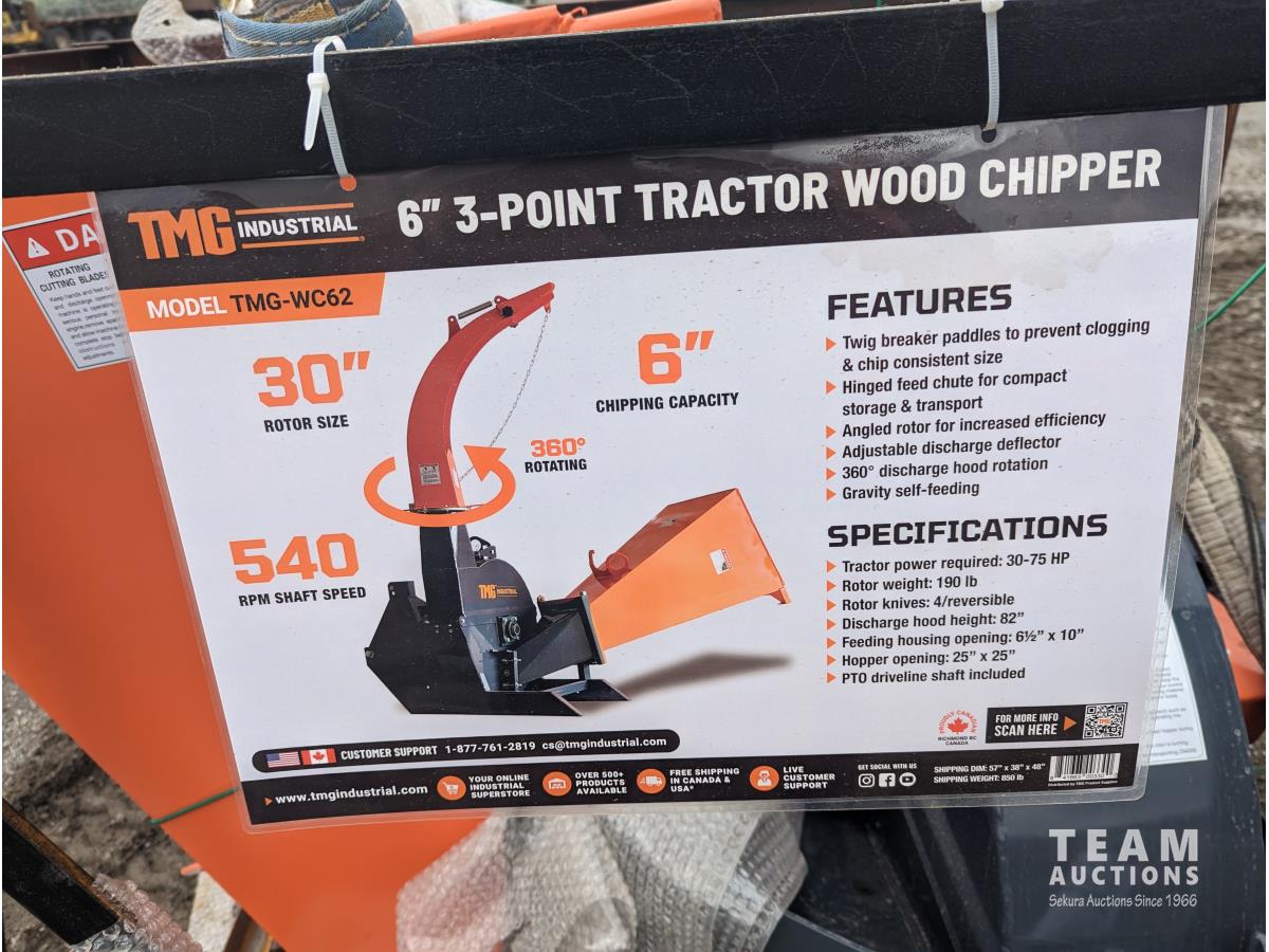 263 TMG Industrial WC62 6 Inch Compact 3-Point Wood Chipper - Tractor Attachment (Unused)