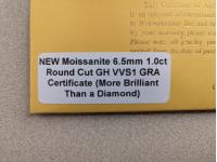 1036 Moissanite 6.5 mm 1.0 Carat Round Cut Diamond (Unused)