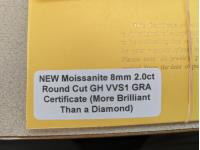 1037 Moissanite 8 mm 2.0 Carat Round Cut Diamond (Unused)