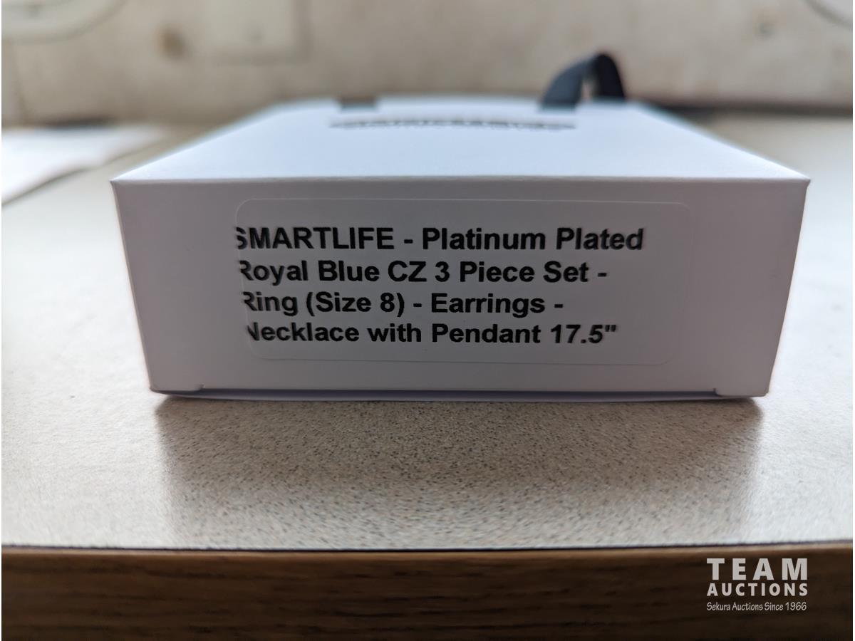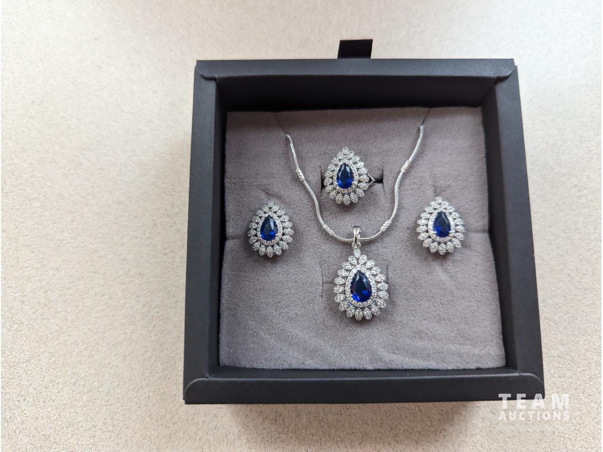 1042 Platinum Plated Royal Blue 3 Piece CZ Set (Unused)