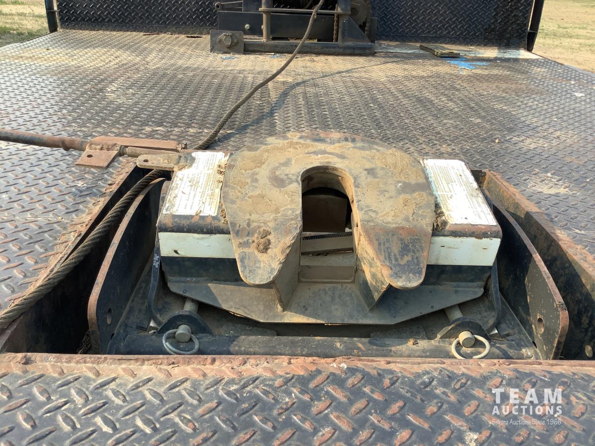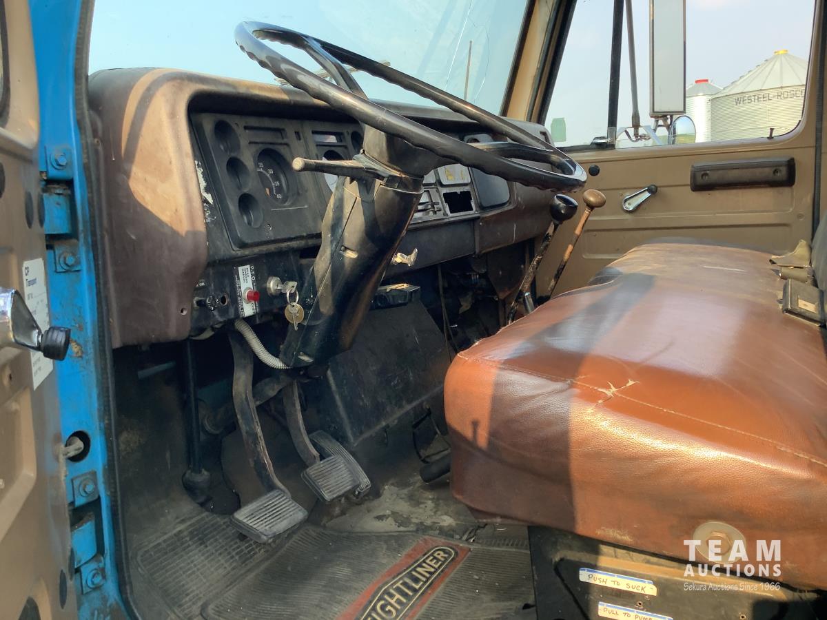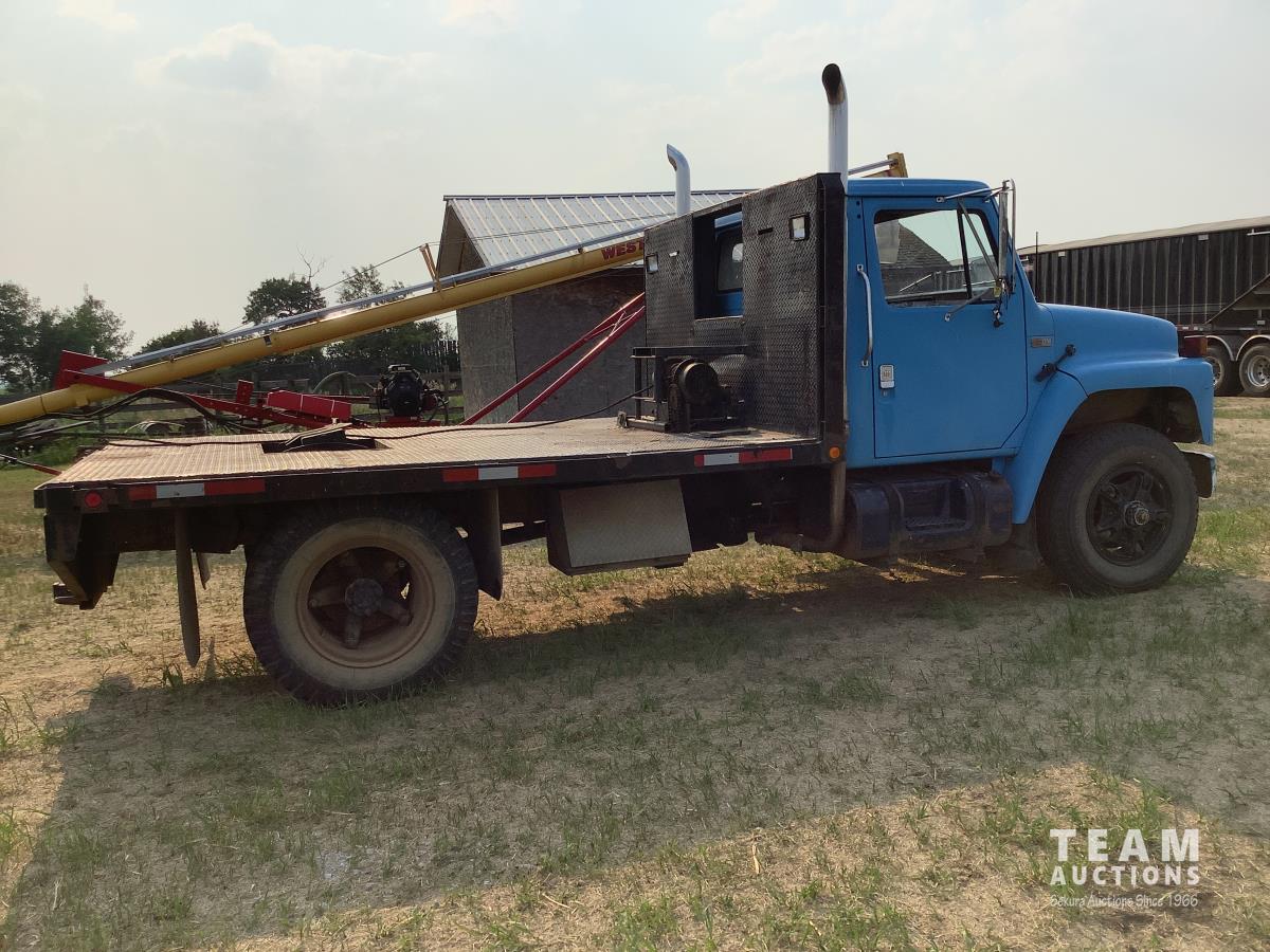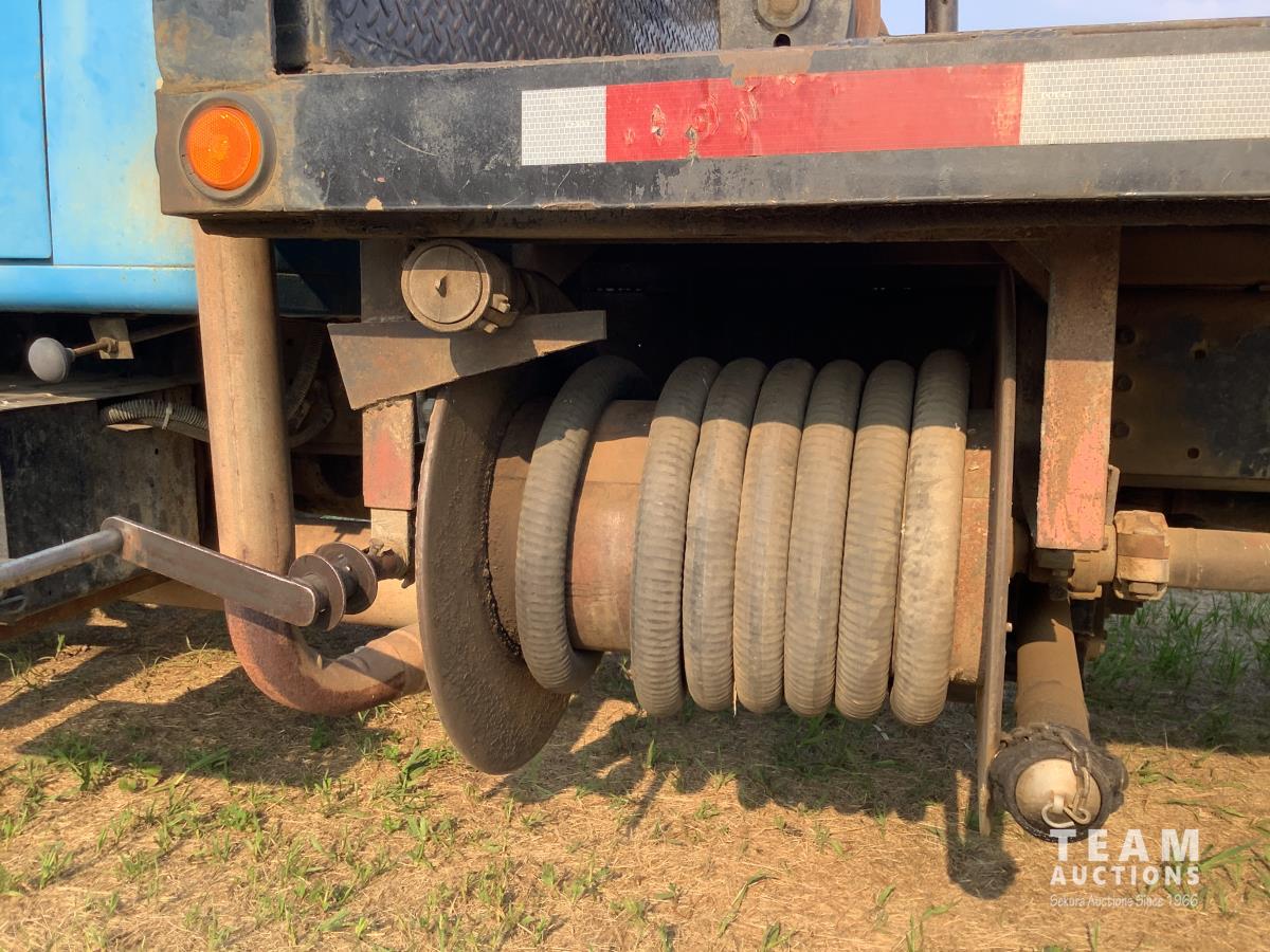 International V8 diesel engine, 5X4 manual transmission, steel deck with 5th wheel hitch, Ramsey winch, rear tow package, 2 inch PTO drive fuel pump with hose reel, 9.00X20 rear tires