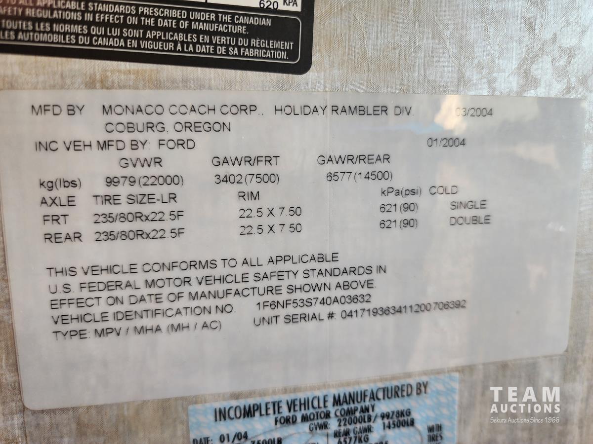 382 2004 Monaco Admiral Holiday Rambler 35 Ft S/A Dually Motorhome