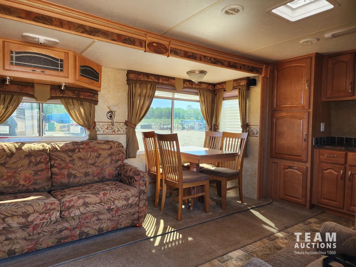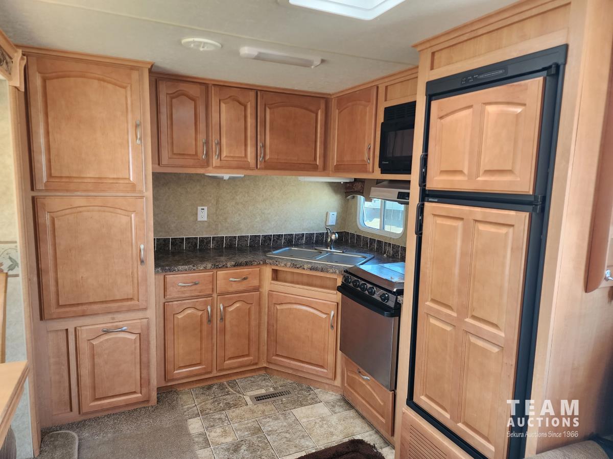 (2) slide outs, fridge, stove, microwave, couch, rocking chair, dinette, shower, sink, toilet, queen bed, awing, A/C, heat, 235/80R16