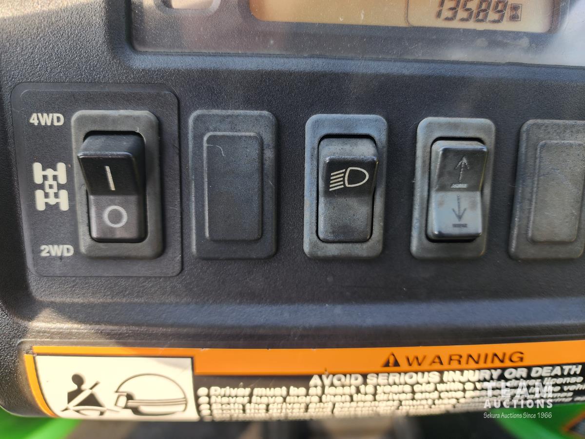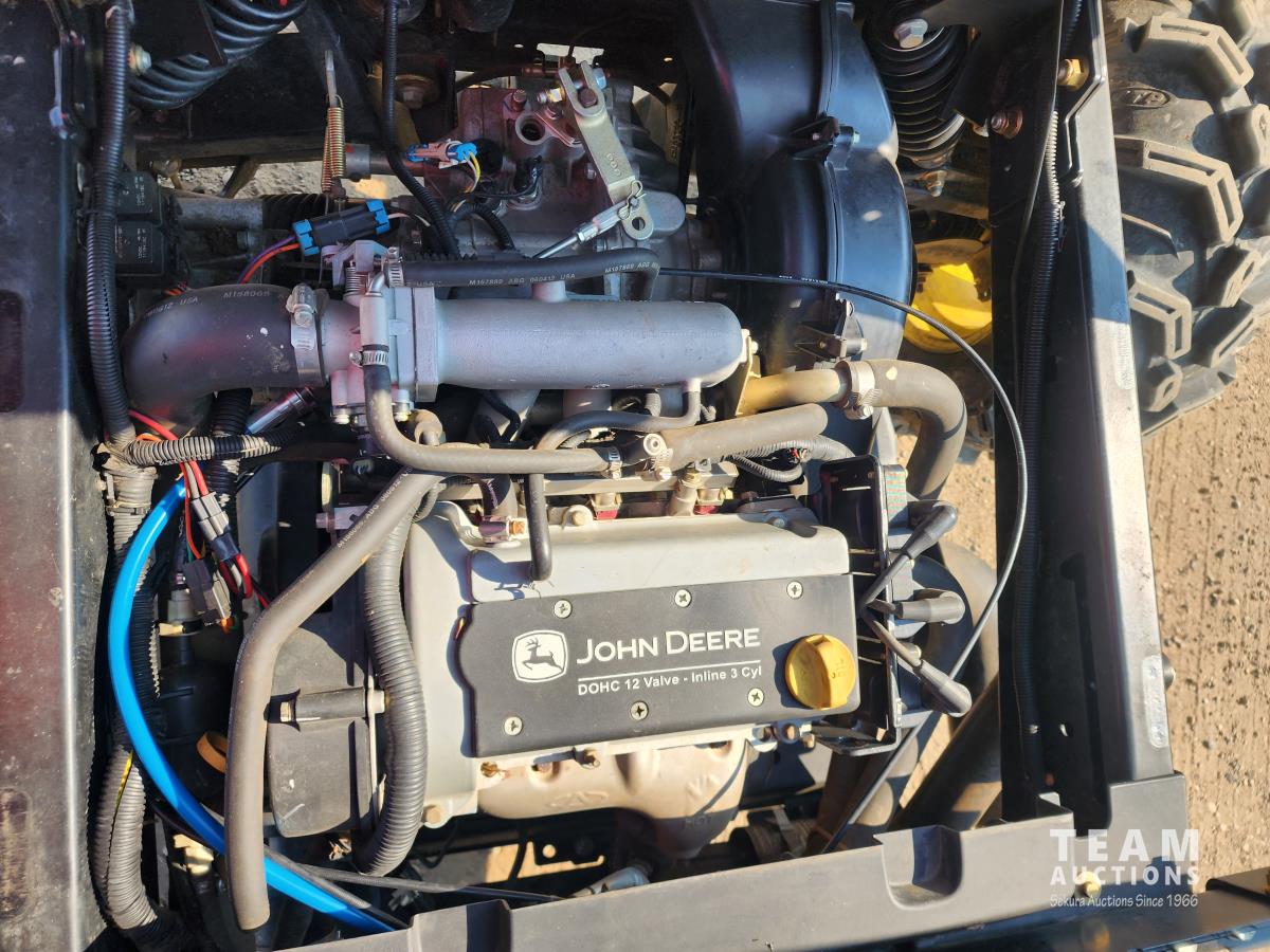 John Deere 12V, 3 cylinder engine, auto transmission, hydraulic dump box, 27X9.00R14 front tires, 27X11R14 rear tires