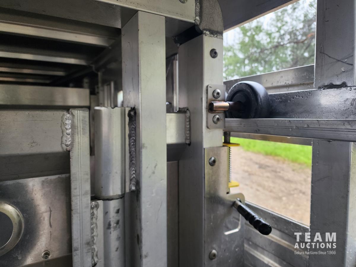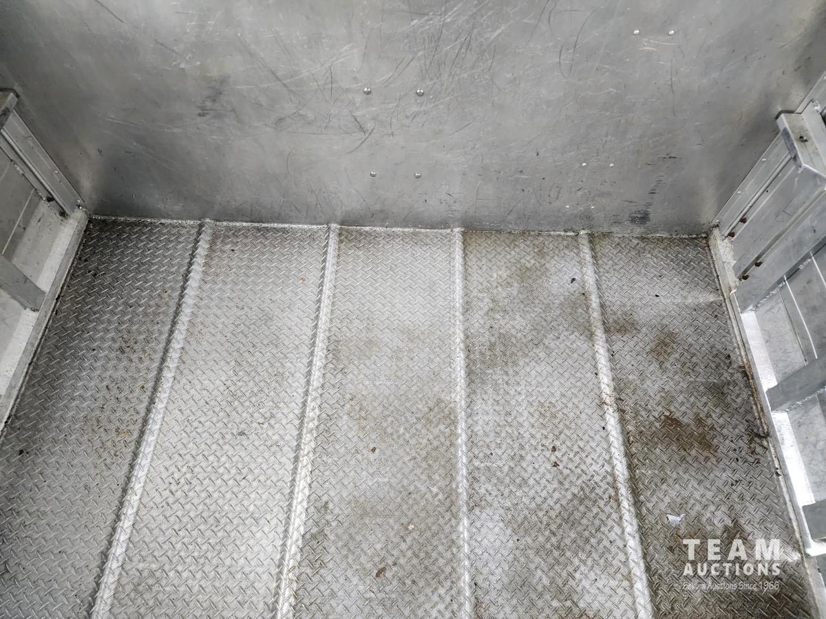 (2) 8,000 lb axles, 93 inch wide, 80 inch H, side man door, rear swing/slide door, (1) partition with swing/slide gate, (1) rolling partition gate, front storage, spare tire, 235/75R17 tires