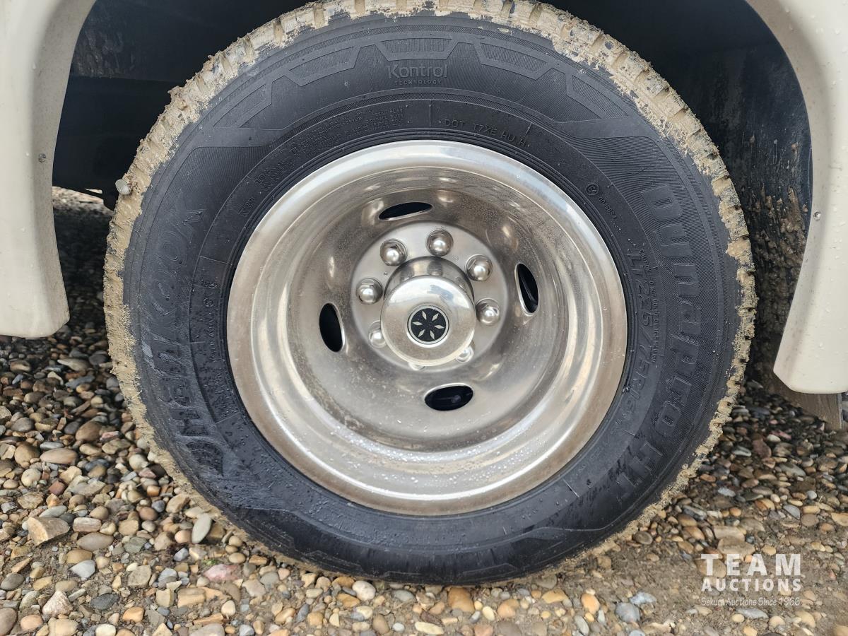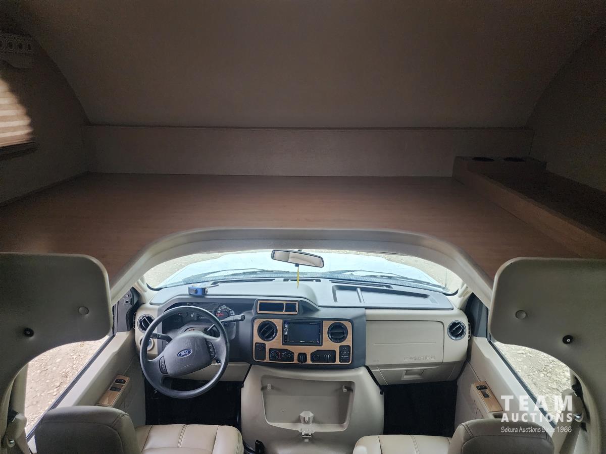Triton V10 engine, TorqShift auto transmission, P/W, P/L, A/C, backup camera, (1) slide out, fridge, stove, microwave, dinette, couch, bed over cab, bathroom, queen bed with lots of storage, A/C, heat, Onan QG 4000 generator, rear receiver hitch, awning, outside shower, 225/75R16 tires