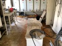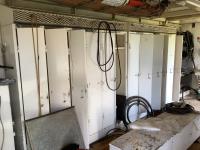 Caterpillar 3306 engine with Magnmax synchronous model 432RSL4013 250 KVA, 3 phase generator, oil storage tanks, diesel storage tank, heaters, parts storage area, electrical panel boxes