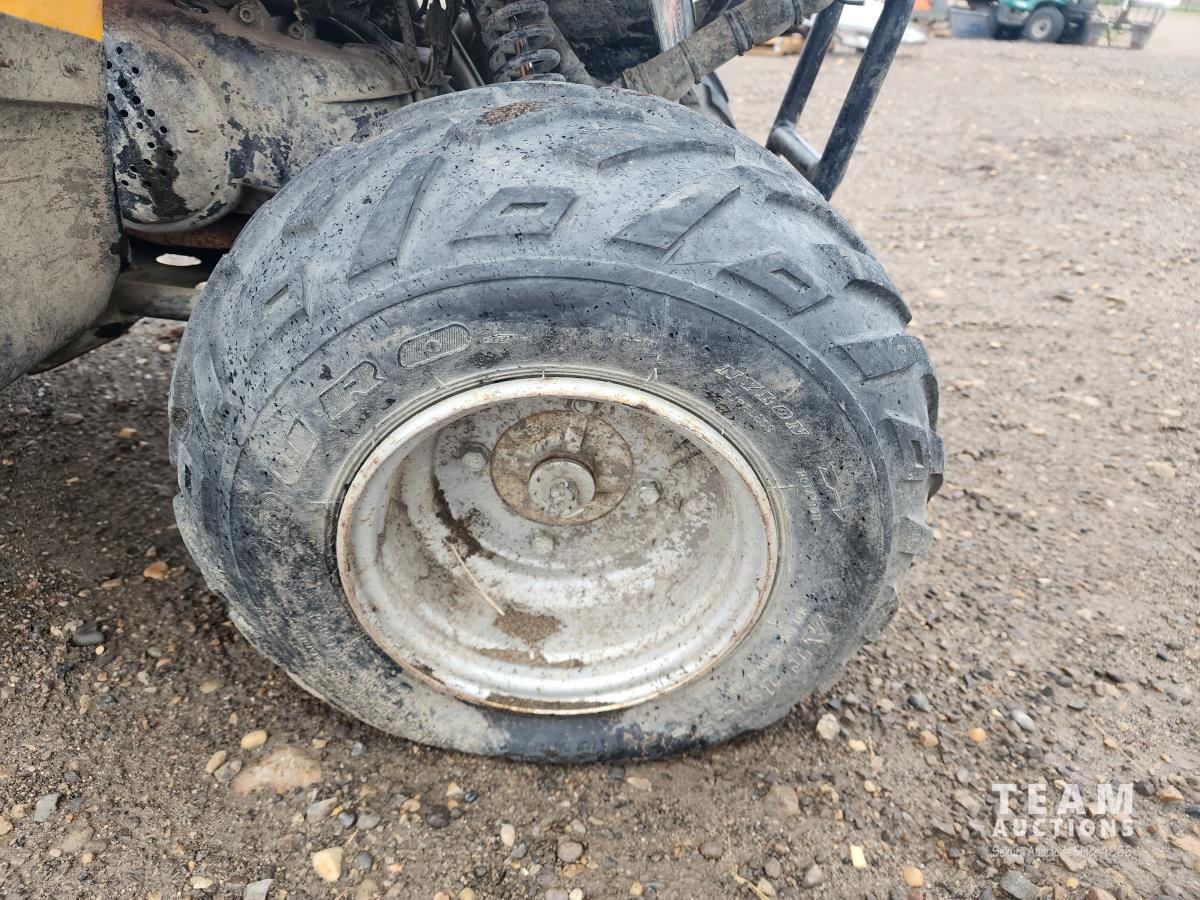 90 cc, electric start, 19X7-8 front tires, 18X9.50-8 rear tires