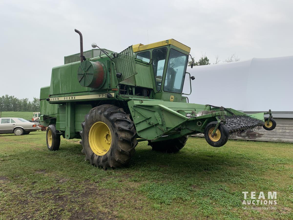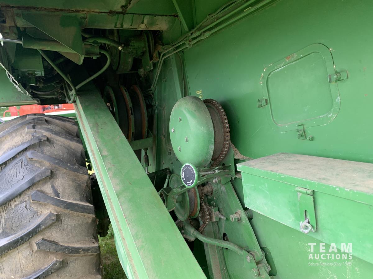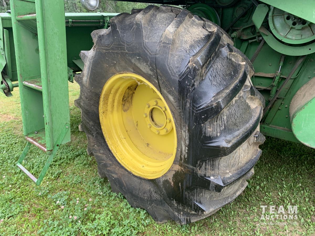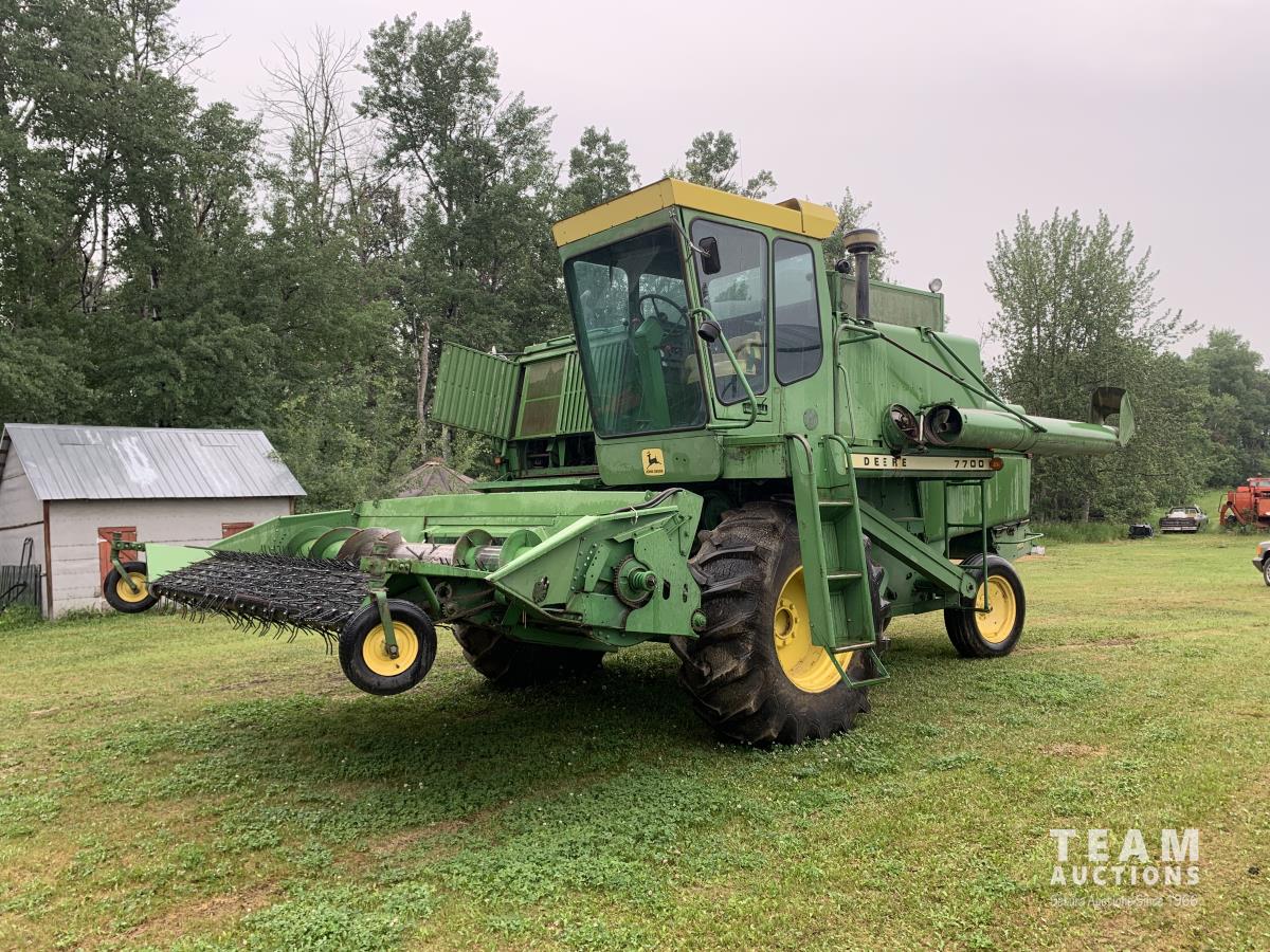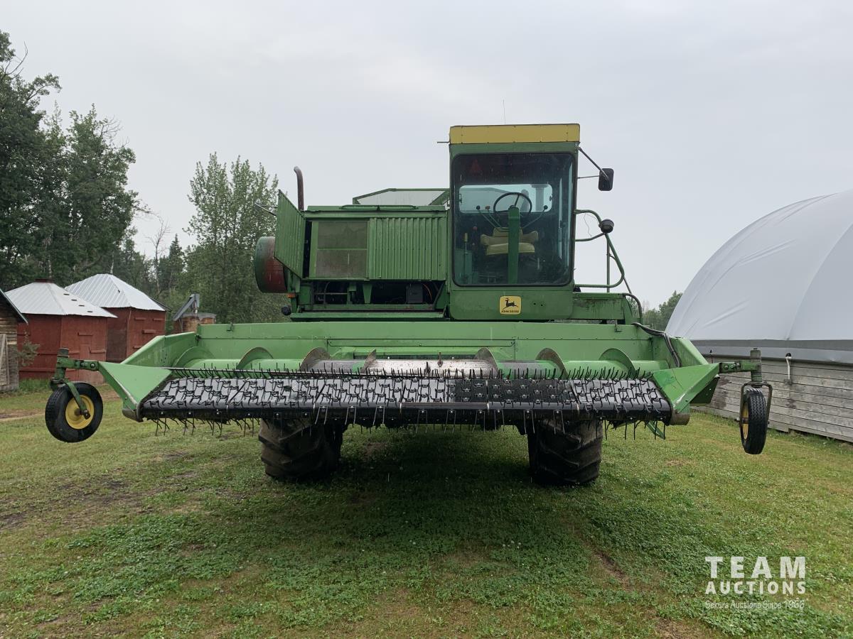 John Deere 11 ft pick-up header, chopper, 6 cylinder diesel engine, 24.5-32 front tires, 9.00-24 rear tires