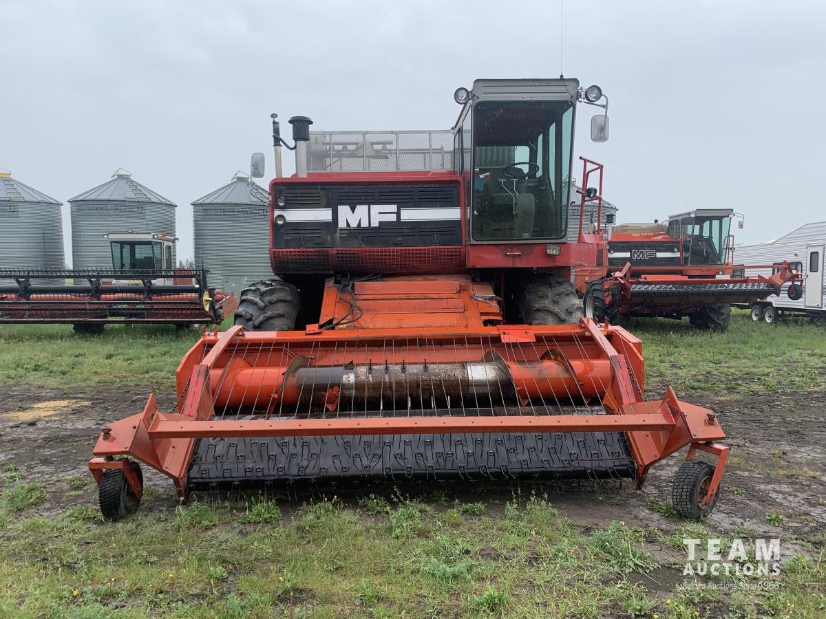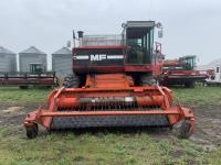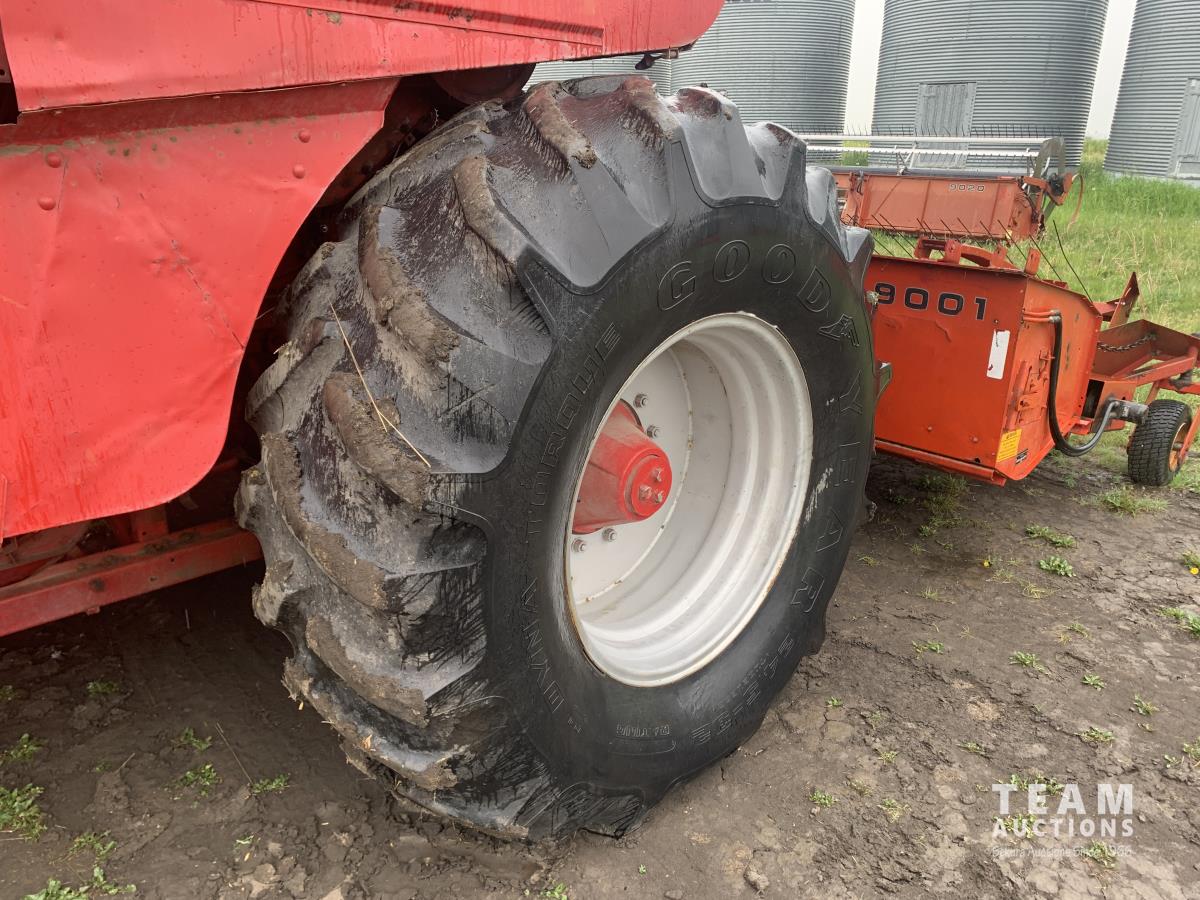 Massy Ferguson 9001 11 ft pick-up header, variable speed reel, rock trap, chopper, 185 bushel plus extension , A/C, radio, Good rubber, V8-540 cu diesel engine, hydro static drive , 24R32 front tires, 13.6-24 rear tires