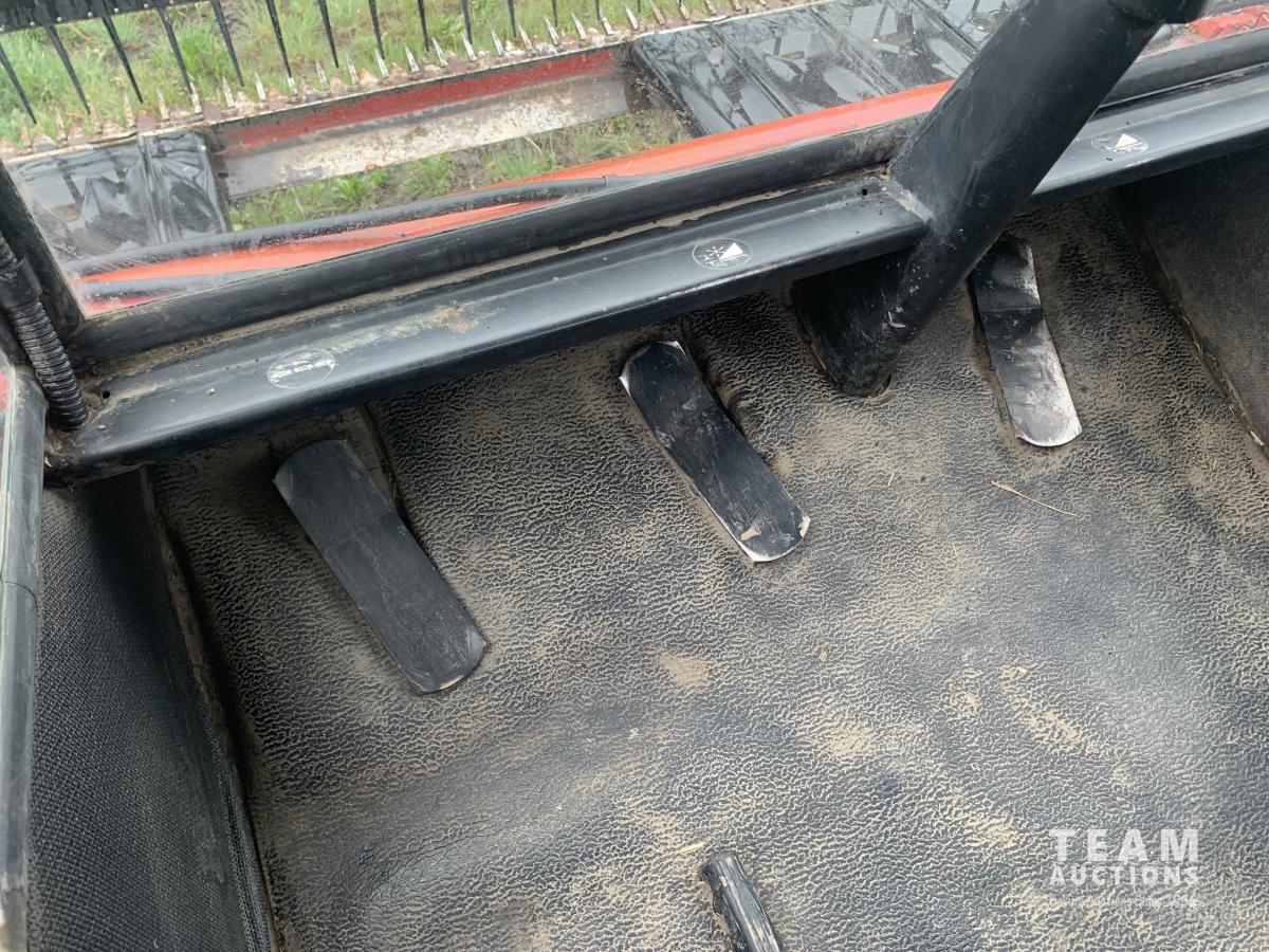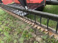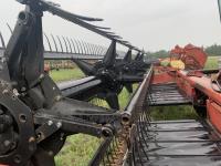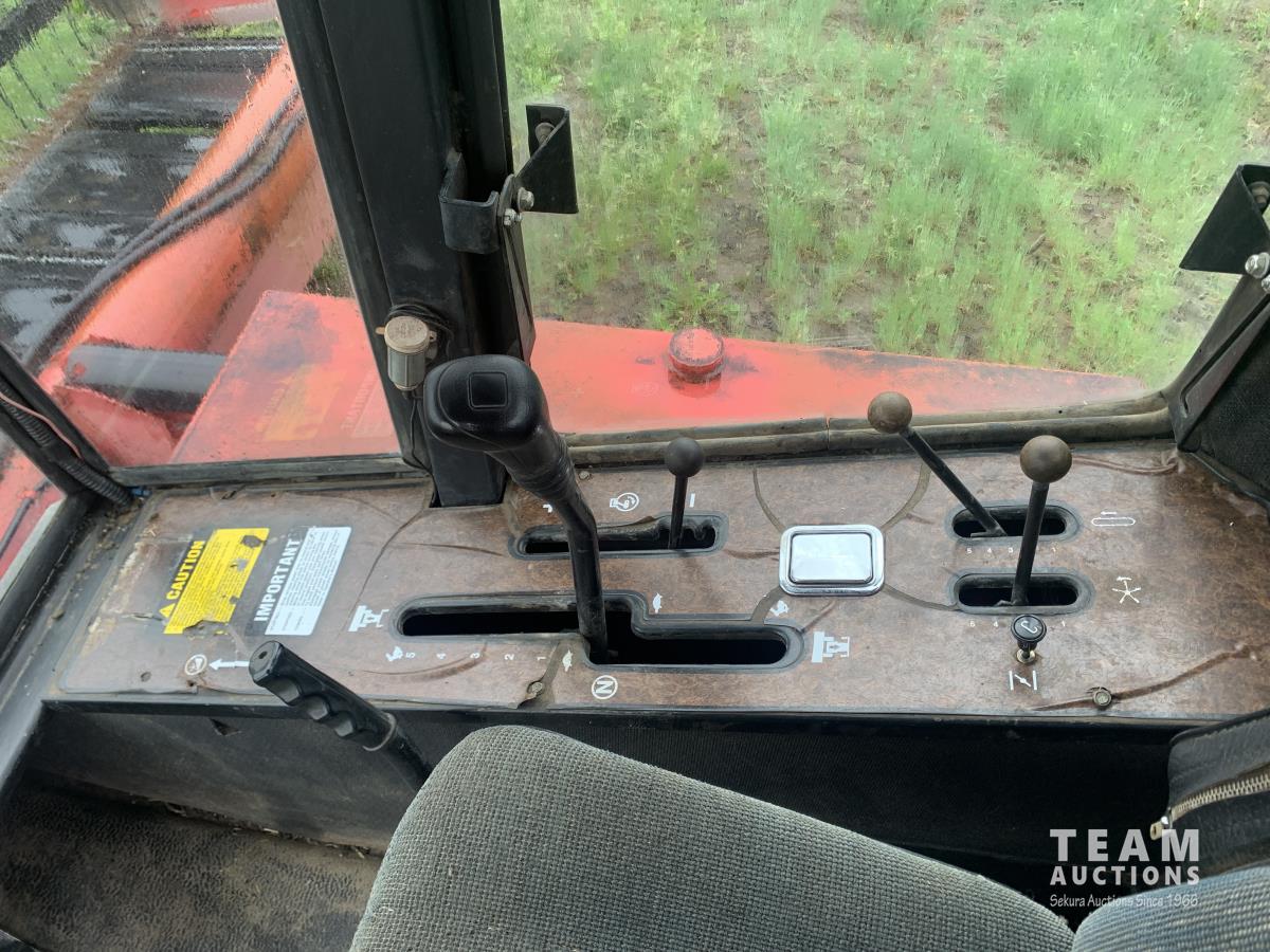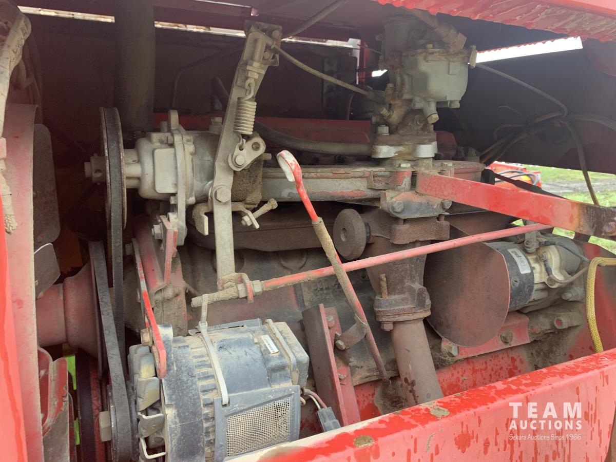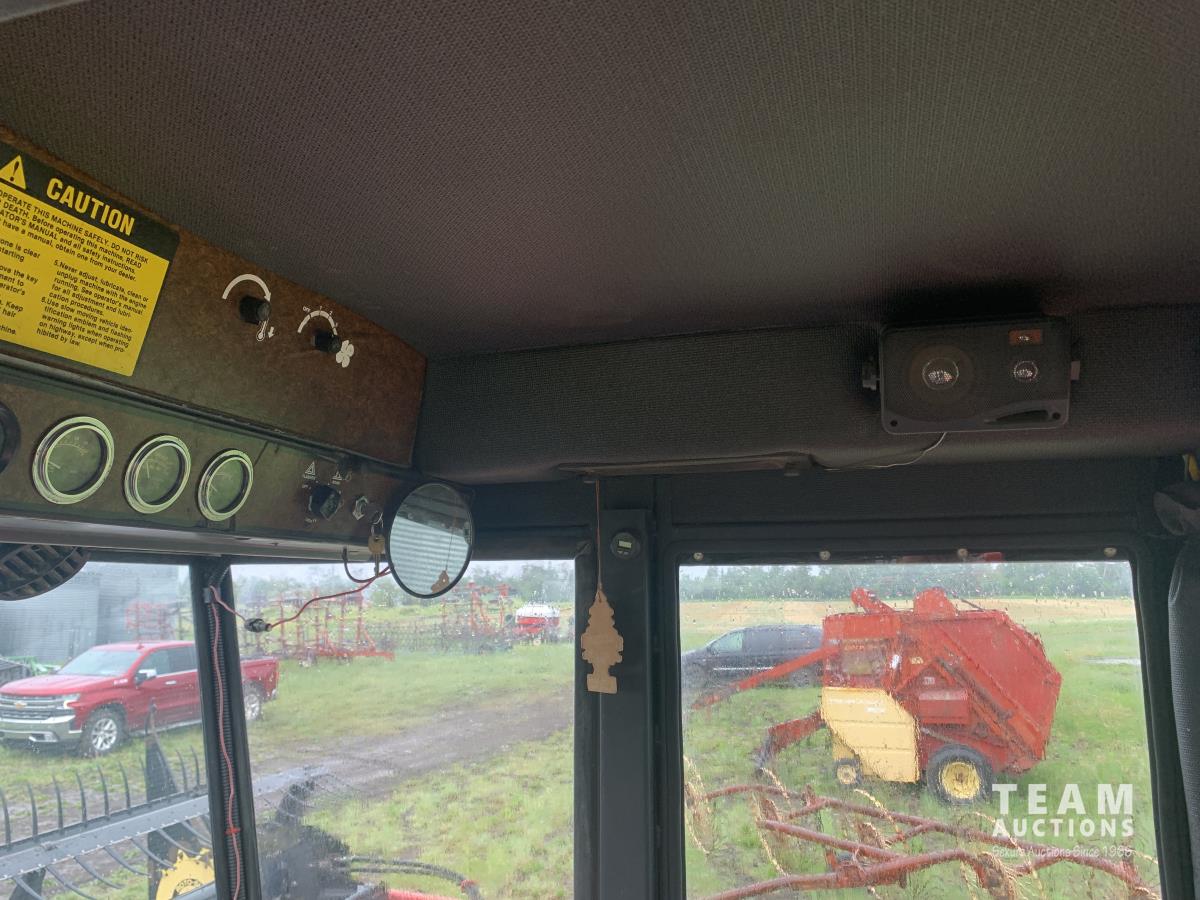 Massy Ferguson 885 21 ft double delivery rigid draper header, pickup reel, variable speed reel, skid plates, Roto shears crop dividers, Canola drum, Chrysler 225 225 cu in 6 cylinder gas engine, A/C, radio, upgraded stereo, Hour clock was replaced at 2100, 18.4-16.1 front tires, 7.60-15 rear tires