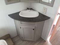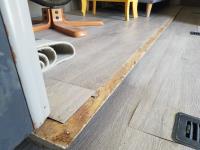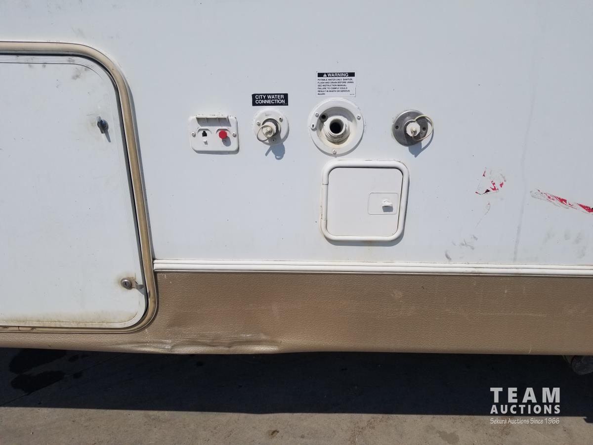 Slides stick, missing cover cap on potable water fill up, some damage to outside, flooring near slides is missing or damaged