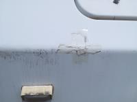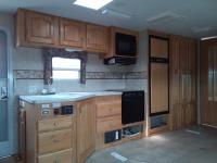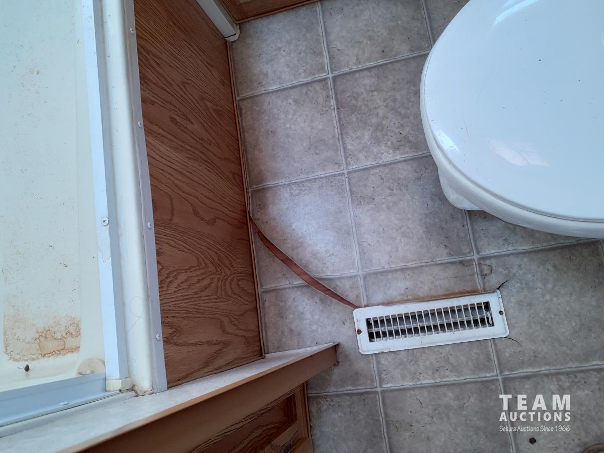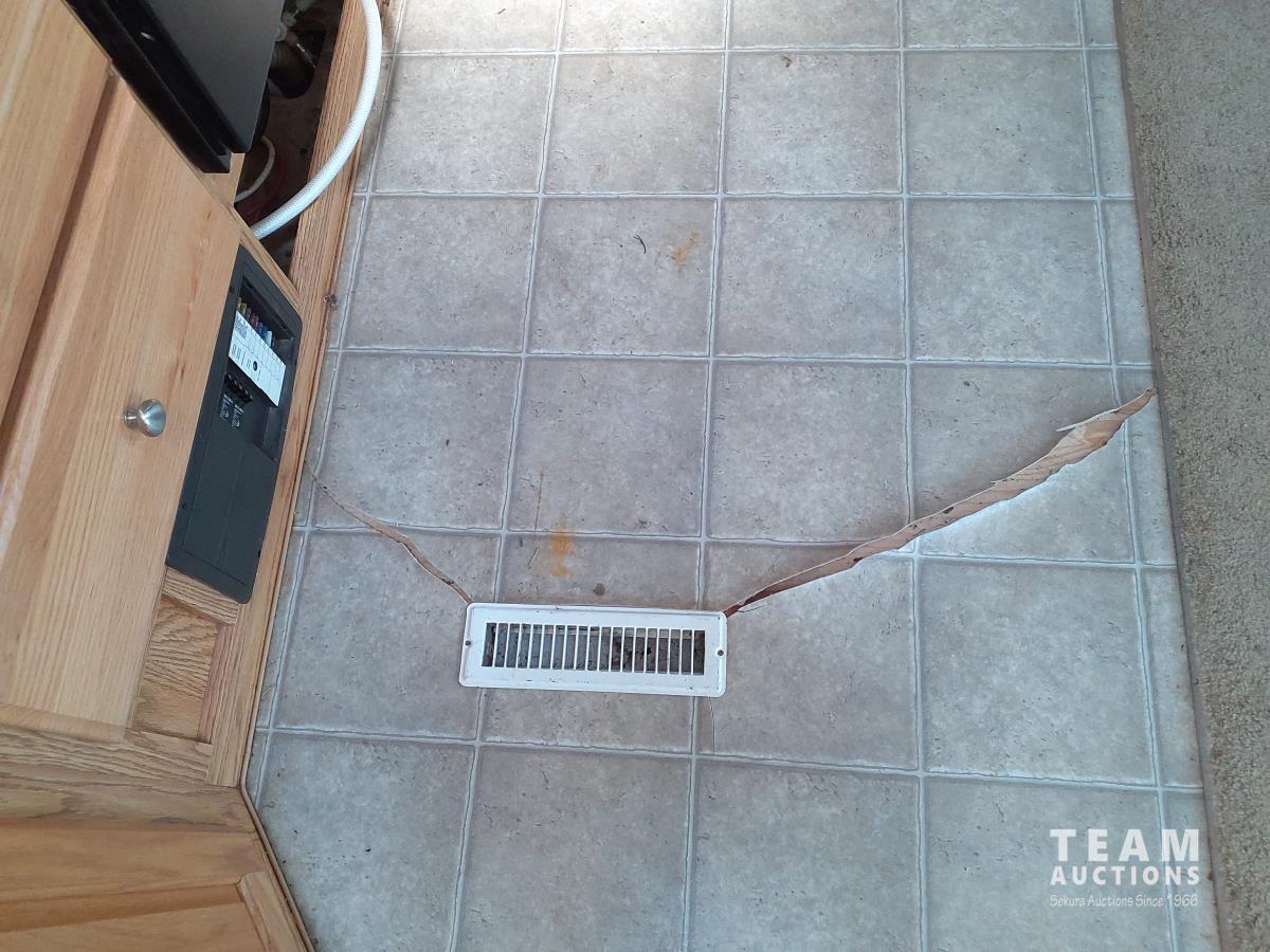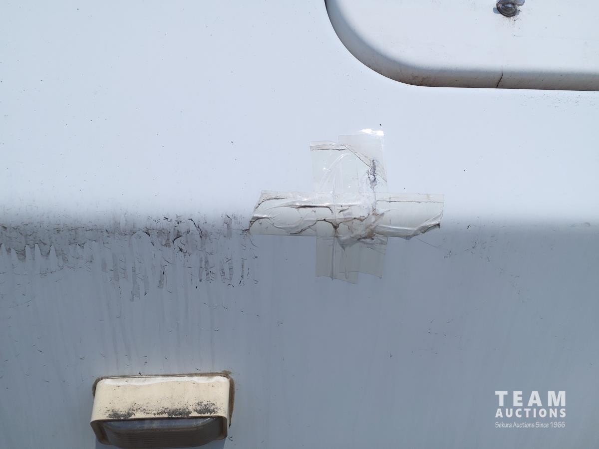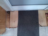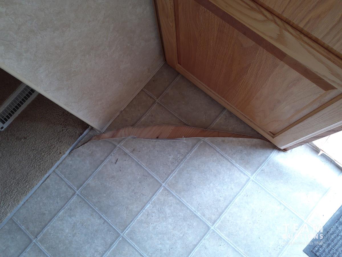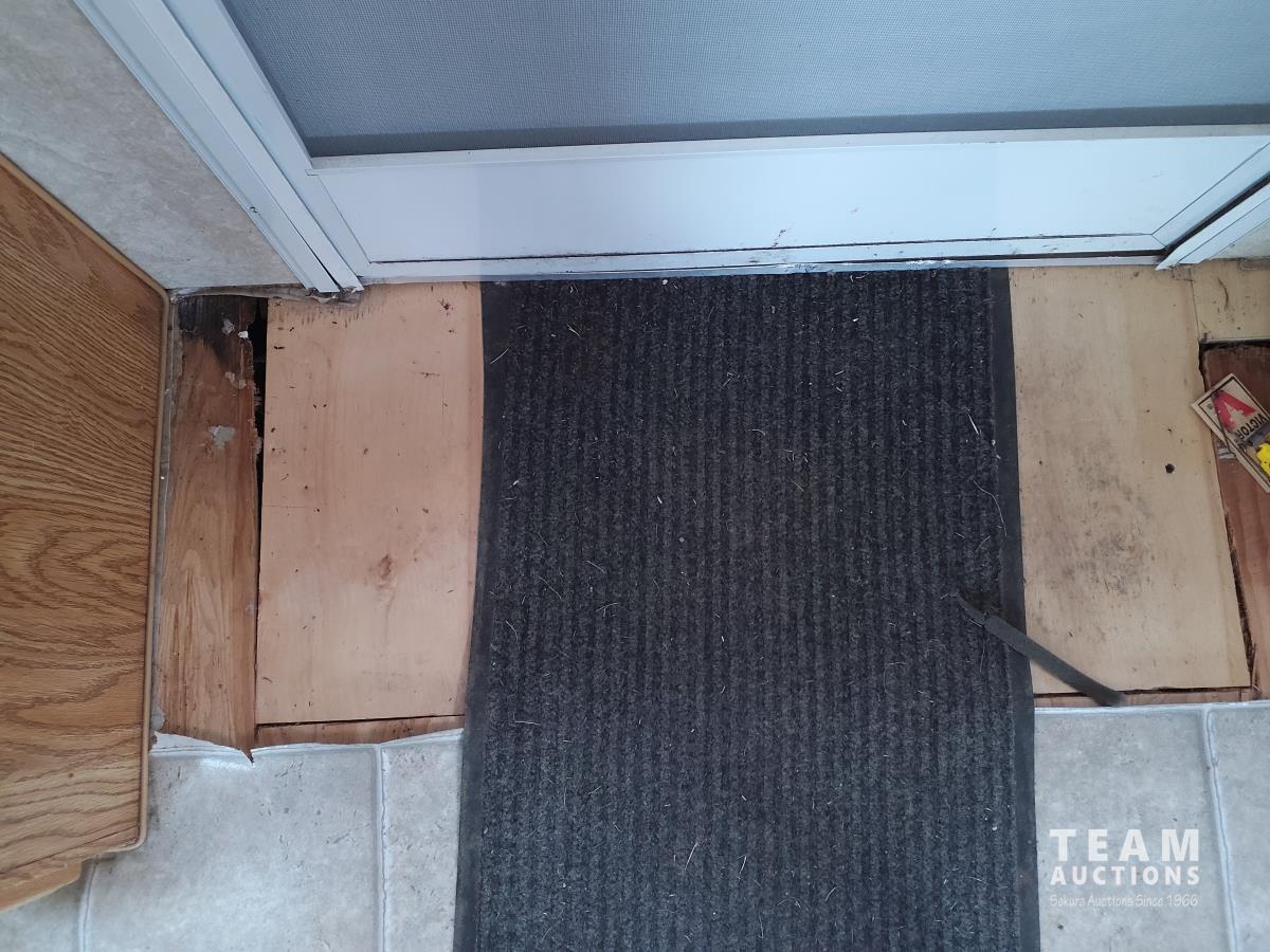 Linoleum has damage and missing in some areas, some damage on outside camper