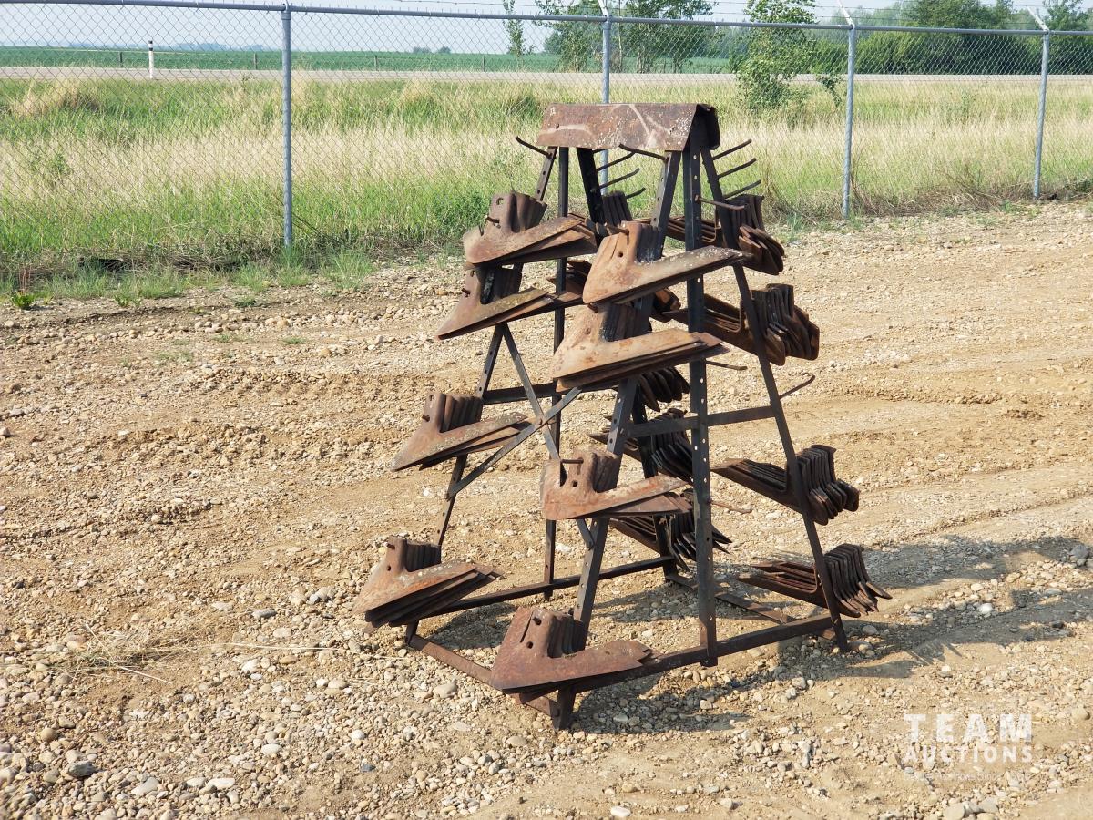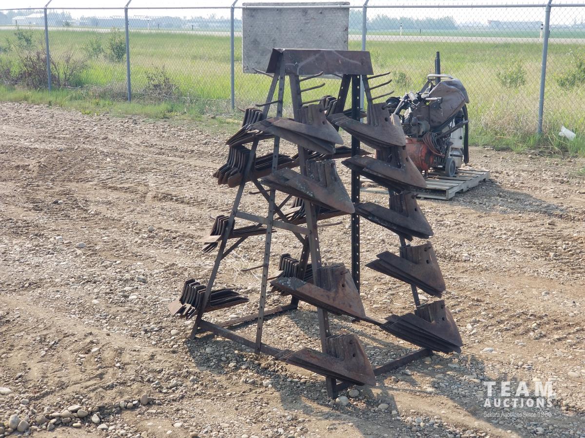 813 Assortment of Cultivator Sweeps On Steel Rack