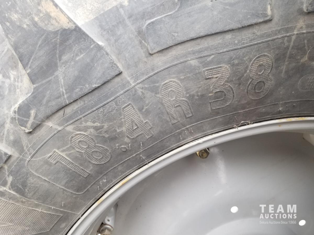 Perkins 6.0 L 6 cylinder 109 HP, diesel engine, 95 PTO HP, 15 GPM hydraulic pump, 16 speed, Speed Shift transmission, cab, left hand reverser, front and rear differential lock, A/C, radio, upgraded stereo, air ride seat, 540/1000 PTO, 3 point hitch, 3 point hitch exterior control, 2 rear hydraulic outlets, 14.9R28 front tires, 18.4R38 rear tires