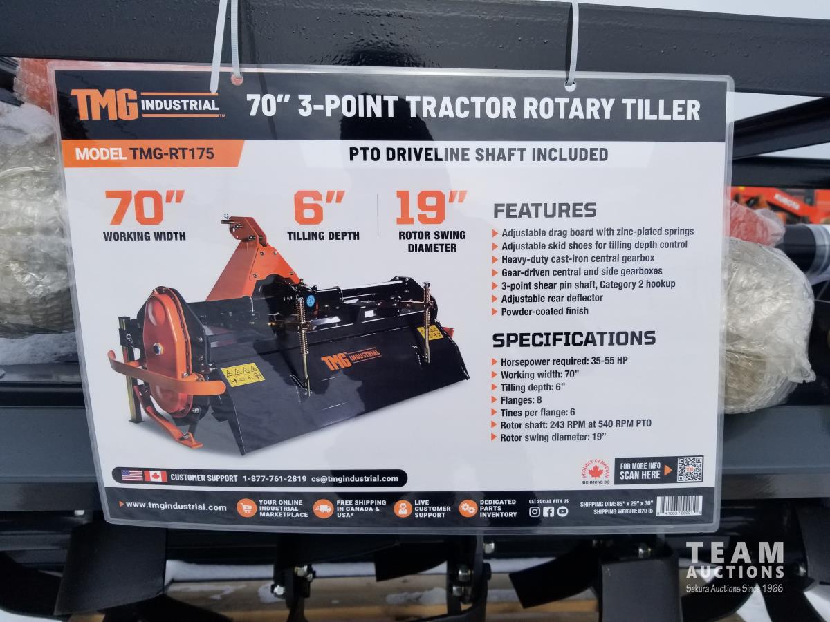 643 TMG Industrial TMG-RT175 70 Inch 3 PT Hitch Rotary Tiller (Unused)