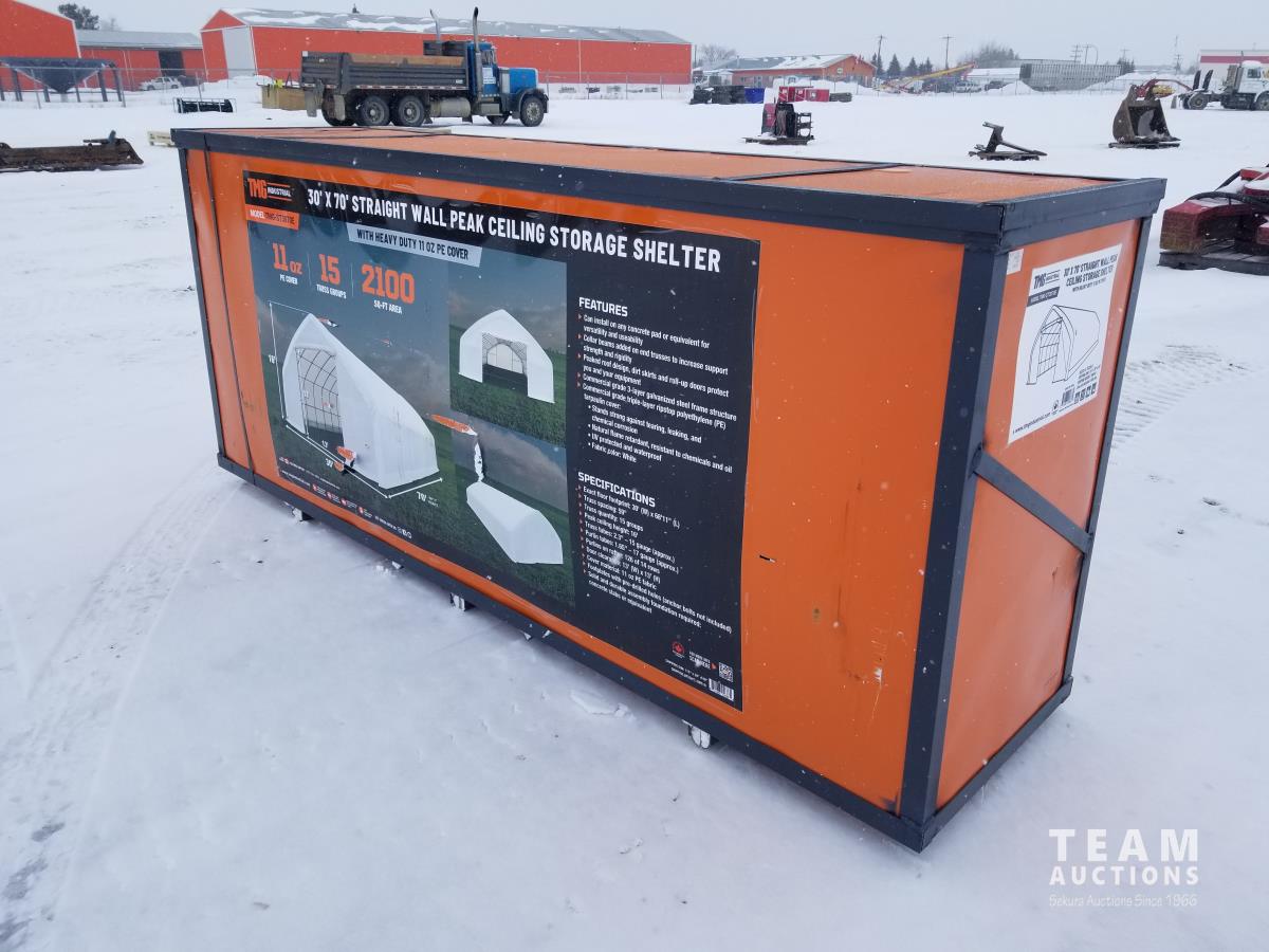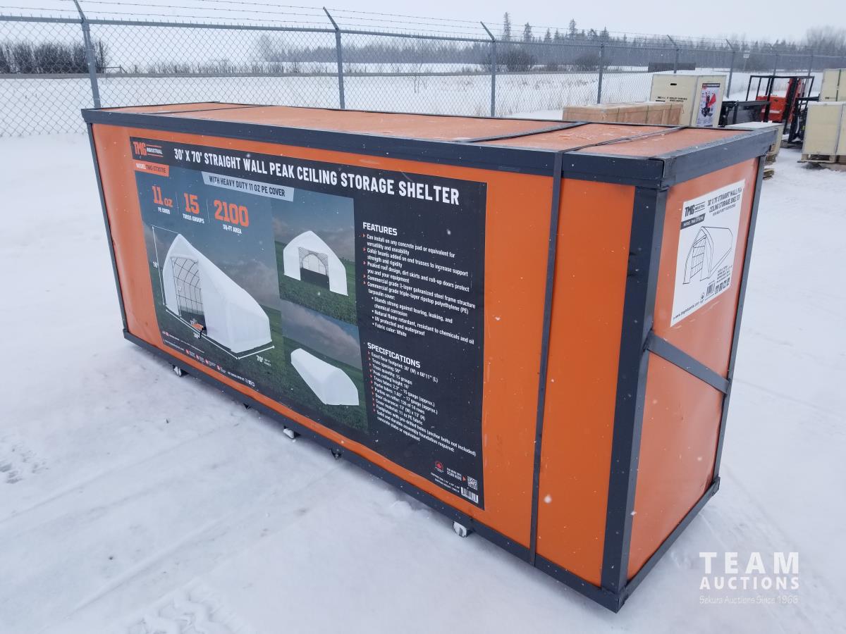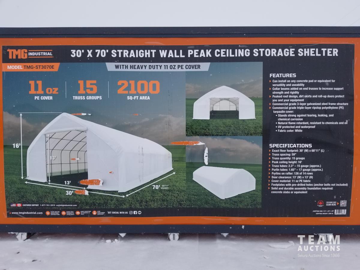 65 TMG Industrial TMG-ST3070E 30 Ft X 70 Ft Straight Wall Storage Shelter (Unused)