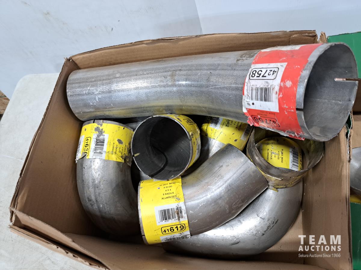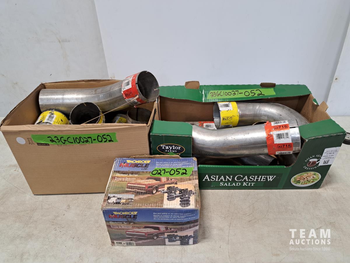 1795 (2) Boxes of Muffler Pipes Various Lengths Mostly 4 Inch and (1) Elastomer Springs (unused)