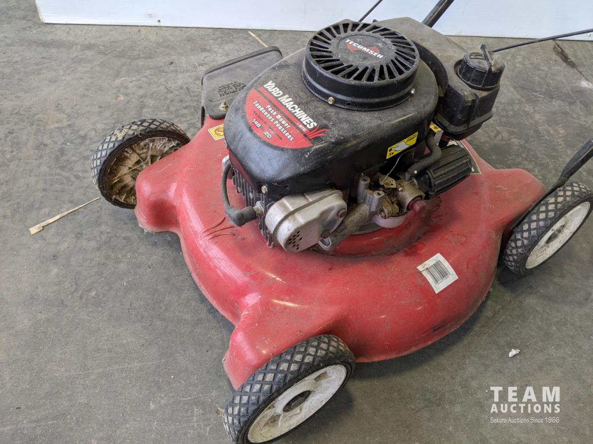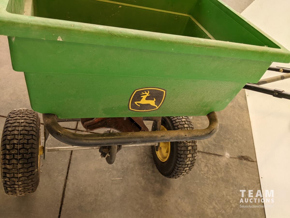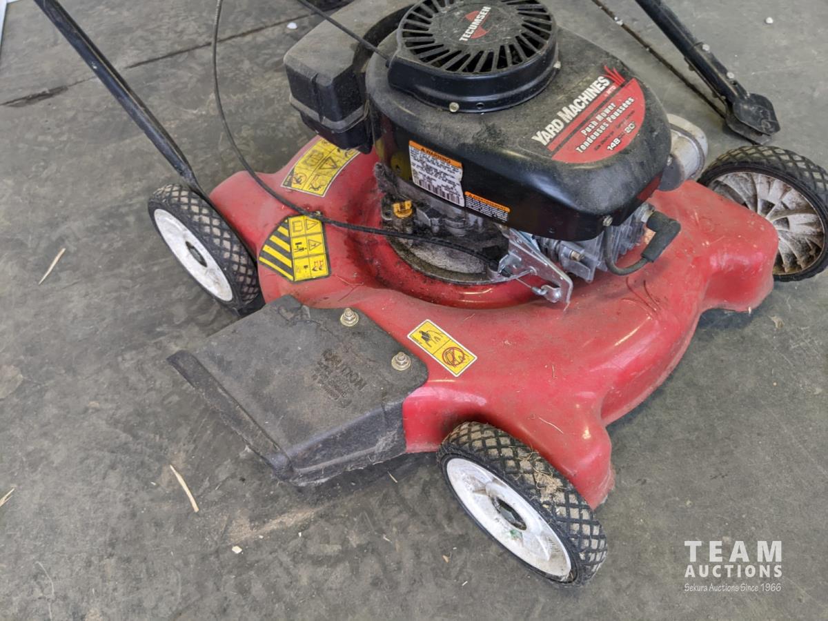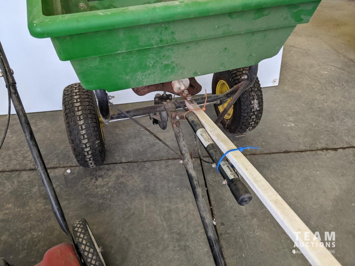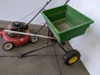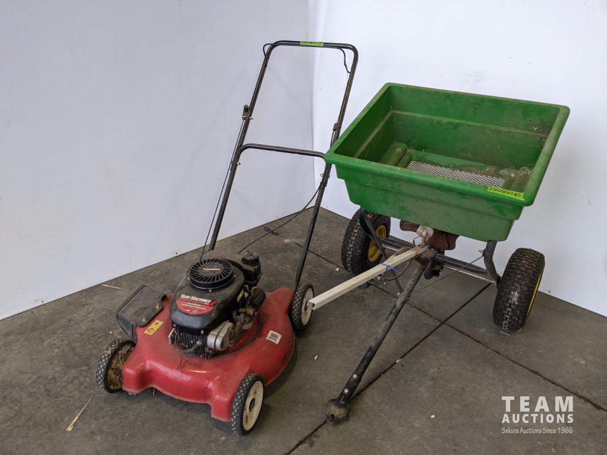 1087 20 Inch Yard Machines 148 cc Push Mower and John Deere Towable Lawn Fertilizer