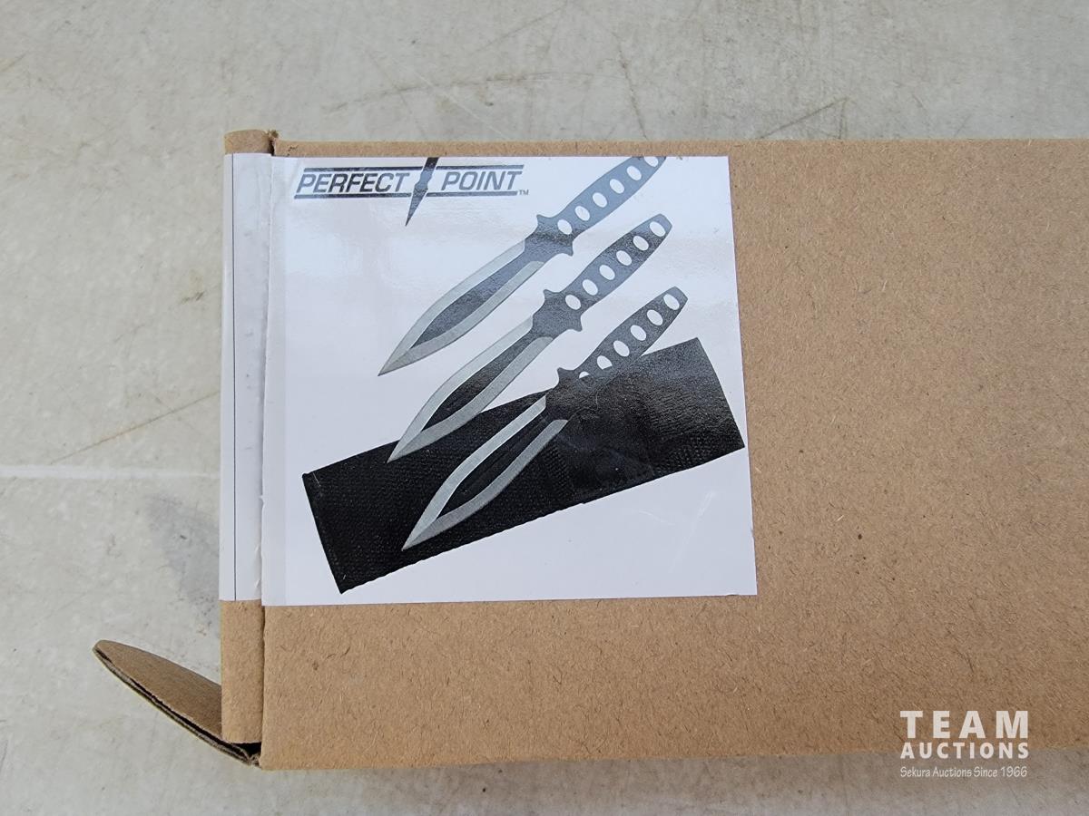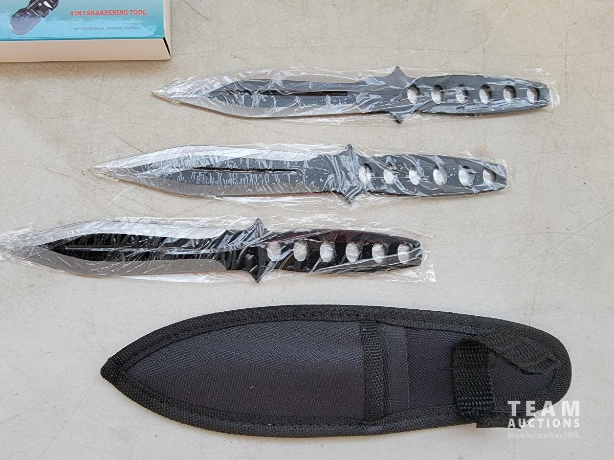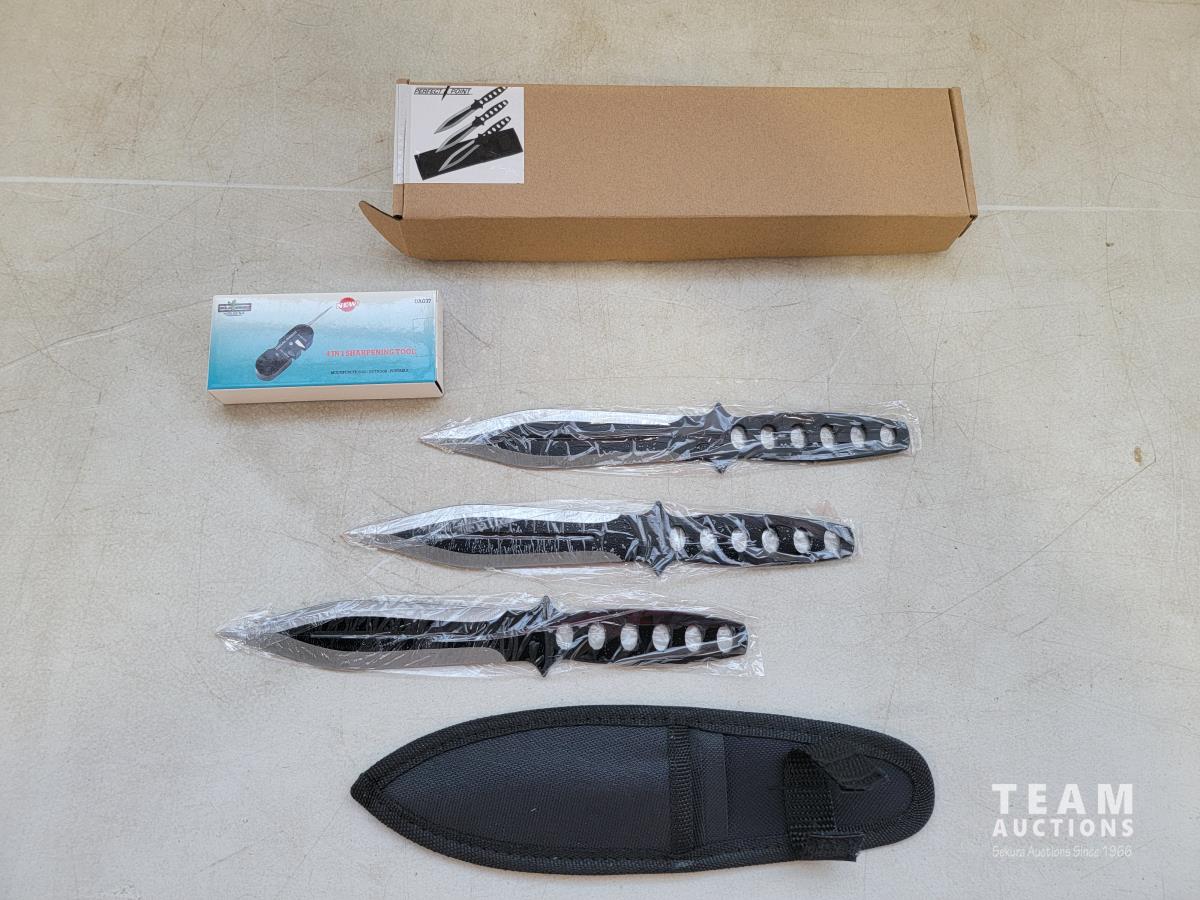 2120 3 Piece Throwing Knives and 4 Inch 1 Sharpening Tool (Unused)
