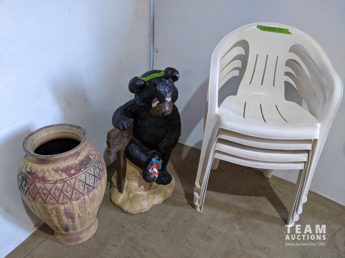 1281 (4) Plastic Chairs, Bear Statue and Large Vase