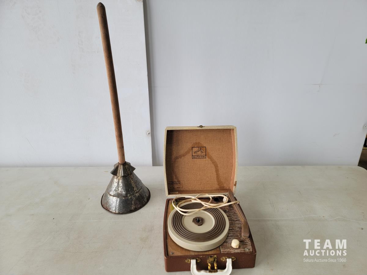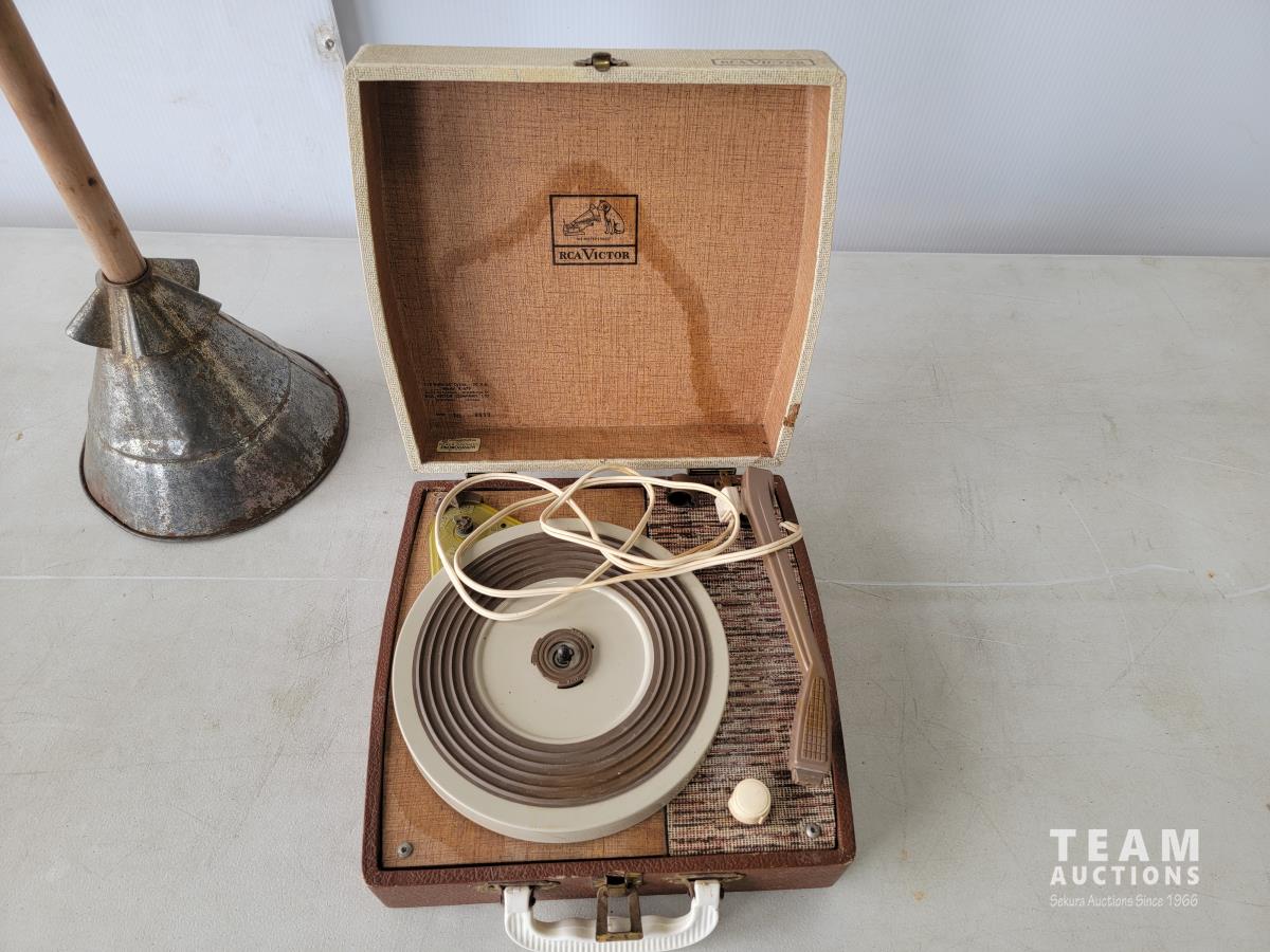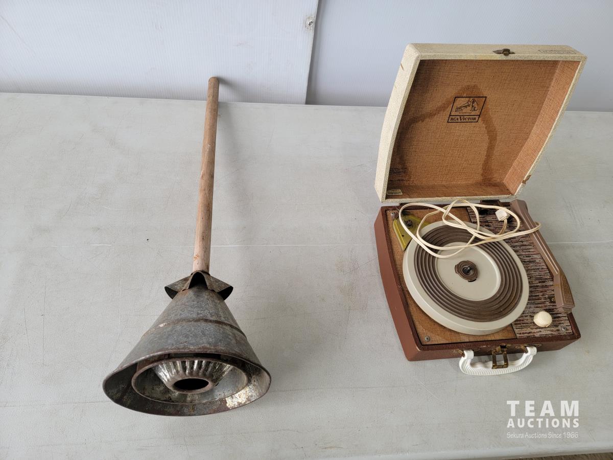 1634 Antique Agitator Old Time Hand Washing Machine and Vintage RCA Victor Phonograph